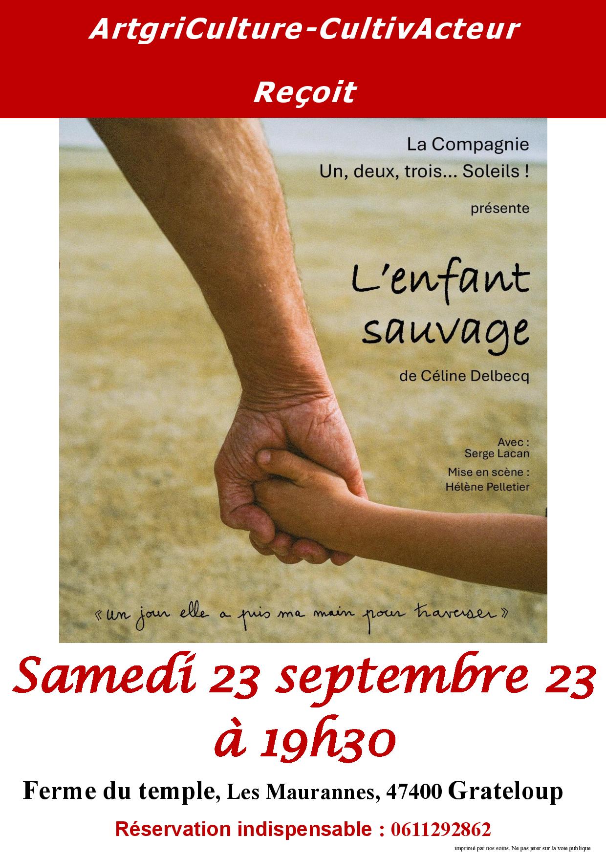 Par la Compagnie Un,deux,trois…soleils!Spectacle tout public à partir de 10 ans, durée 1h10 suivi d’une auberge espagnole en présence de l’artiste.