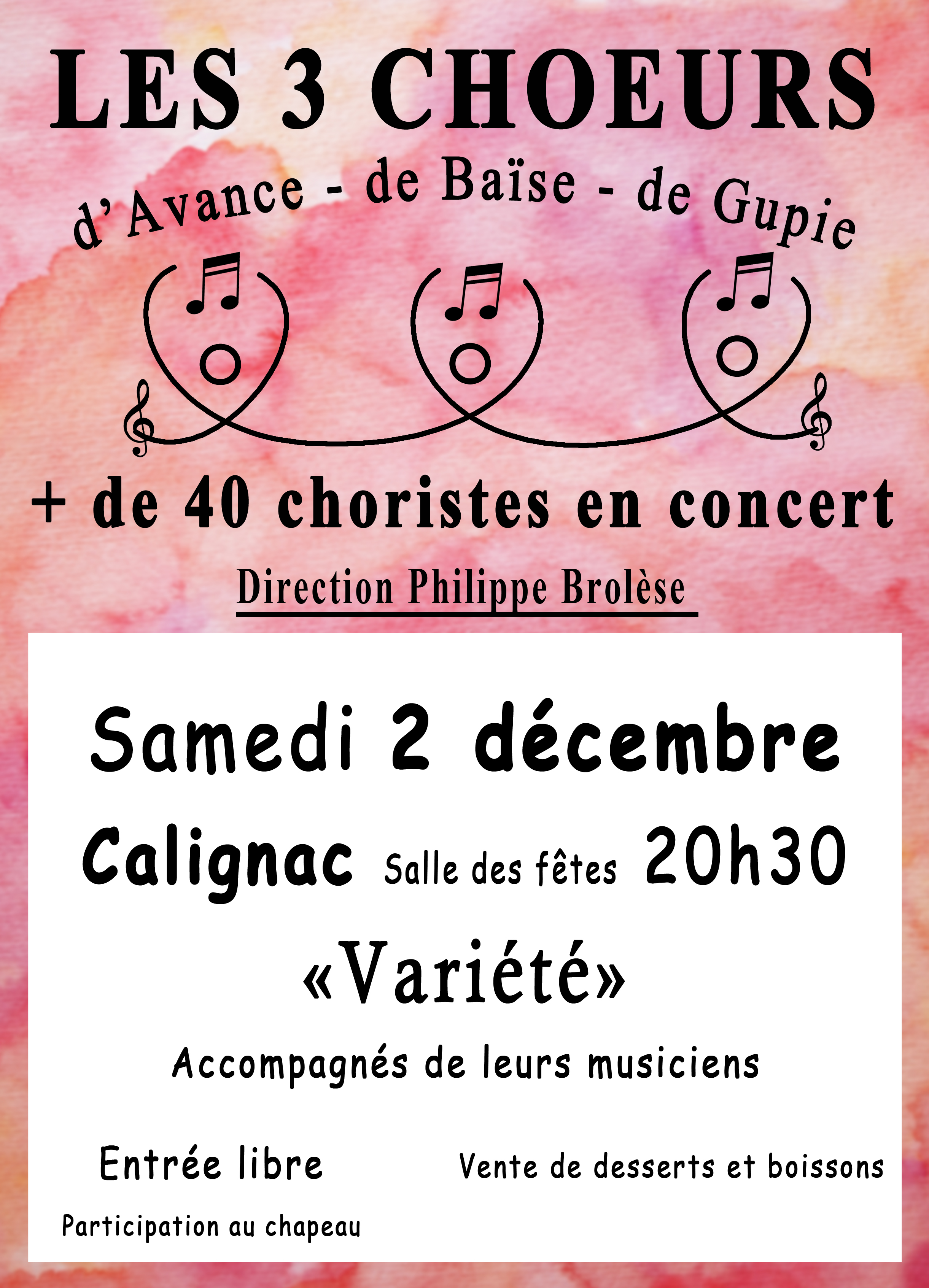 Concert de 3 Chœurs d’Avance de Gupy de Baïse.