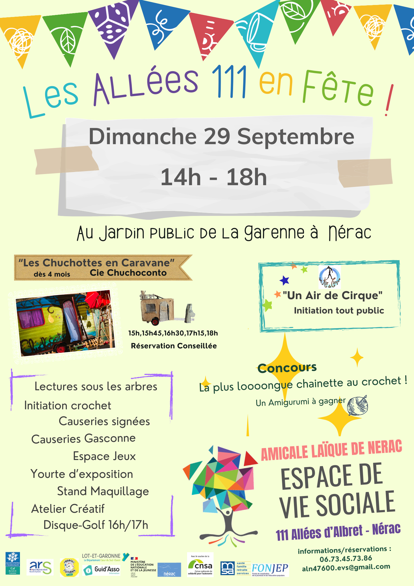 Manifestation familiale gratuite, l’occasion de goûter aux ateliers, jeux et spectacles proposés tout au long de l’année à l’Espace de Vie Sociale de Nérac.