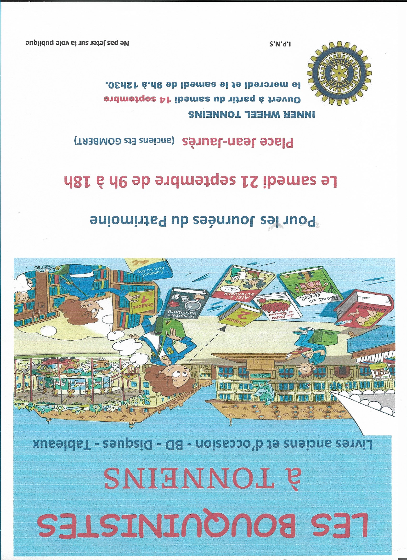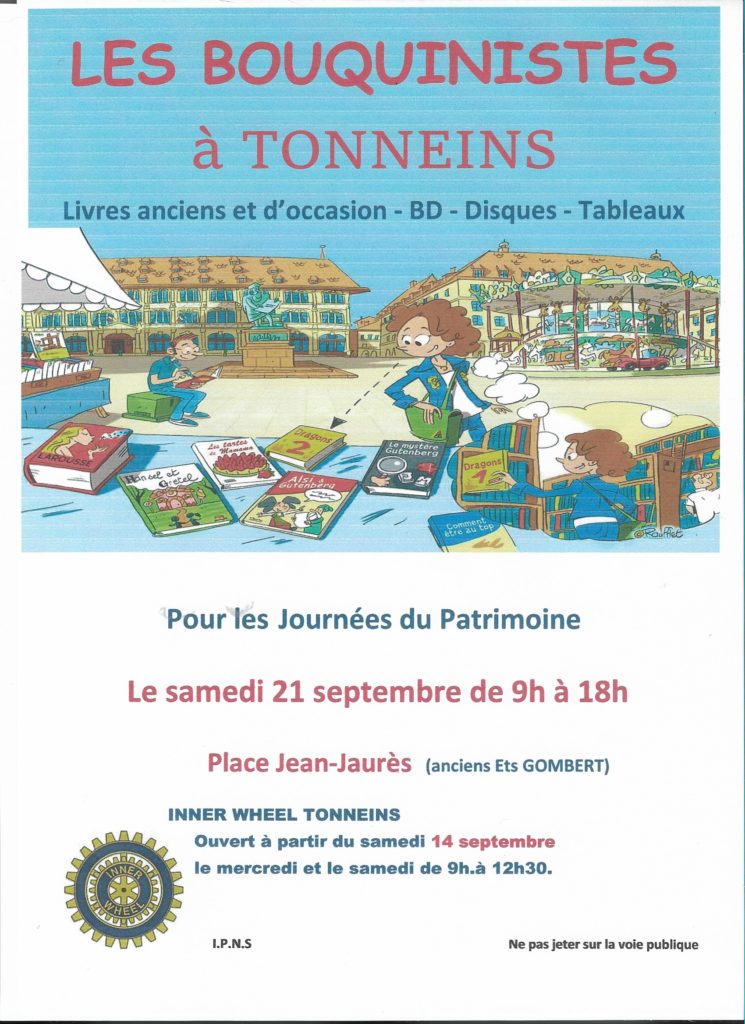 Vente de livres provenant de dons le samedi 21 septembre de 9h à 18h place Jean Jaurès (ancien établissement Gombert) à Tonneins au profit de Bergonié et des œuvres locales.