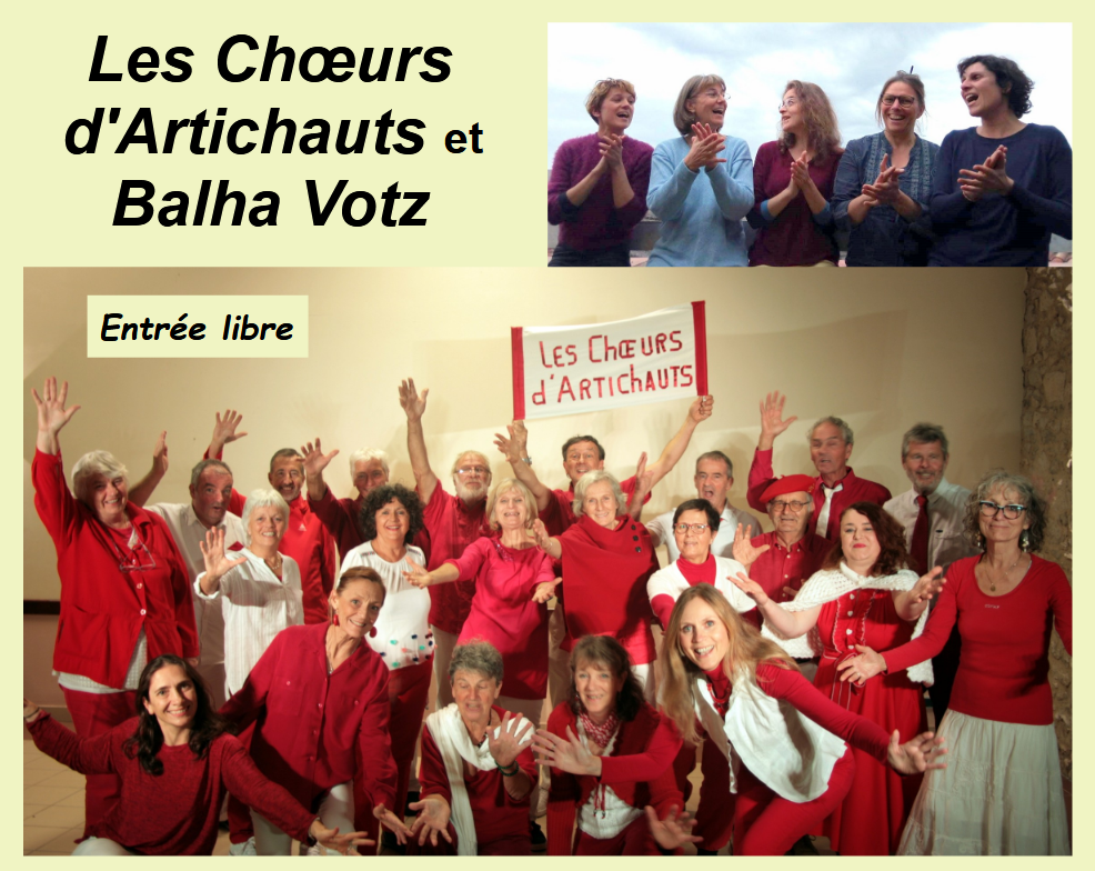 Le groupe vocal Les Chœurs d’Artichauts nous offre un répertoire aux registres variés et aux sonorités colorées est composé de : Musiques du Monde, Gospels, Négro Spiritual, Chants Traditionnels et Populaires, en passant par des mélodies poétiques et d’autres inclassables.