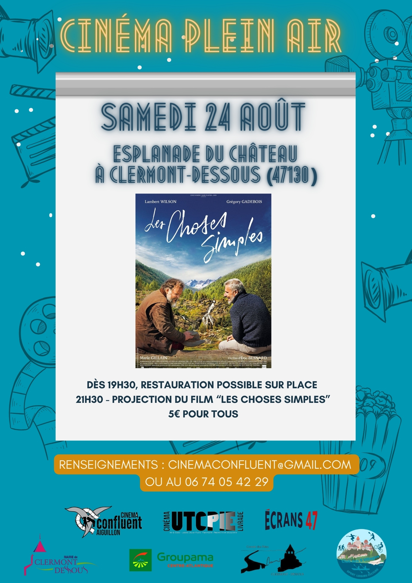 Soirée proposée par Cinéma Confluent, Ecrans 47 Groupement des Cinémas associatifs du Lot et Garonne et les associations communales Club des 5 villages et Comité des fêtes de Clermont Dessous.