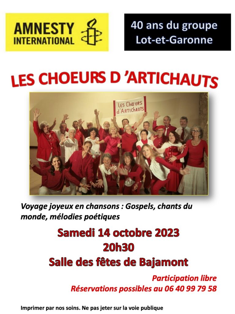 Les Coeurs d’Artichauts chantent pour les 40 ans du groupe Lot et Garonne d’Amnesty International.