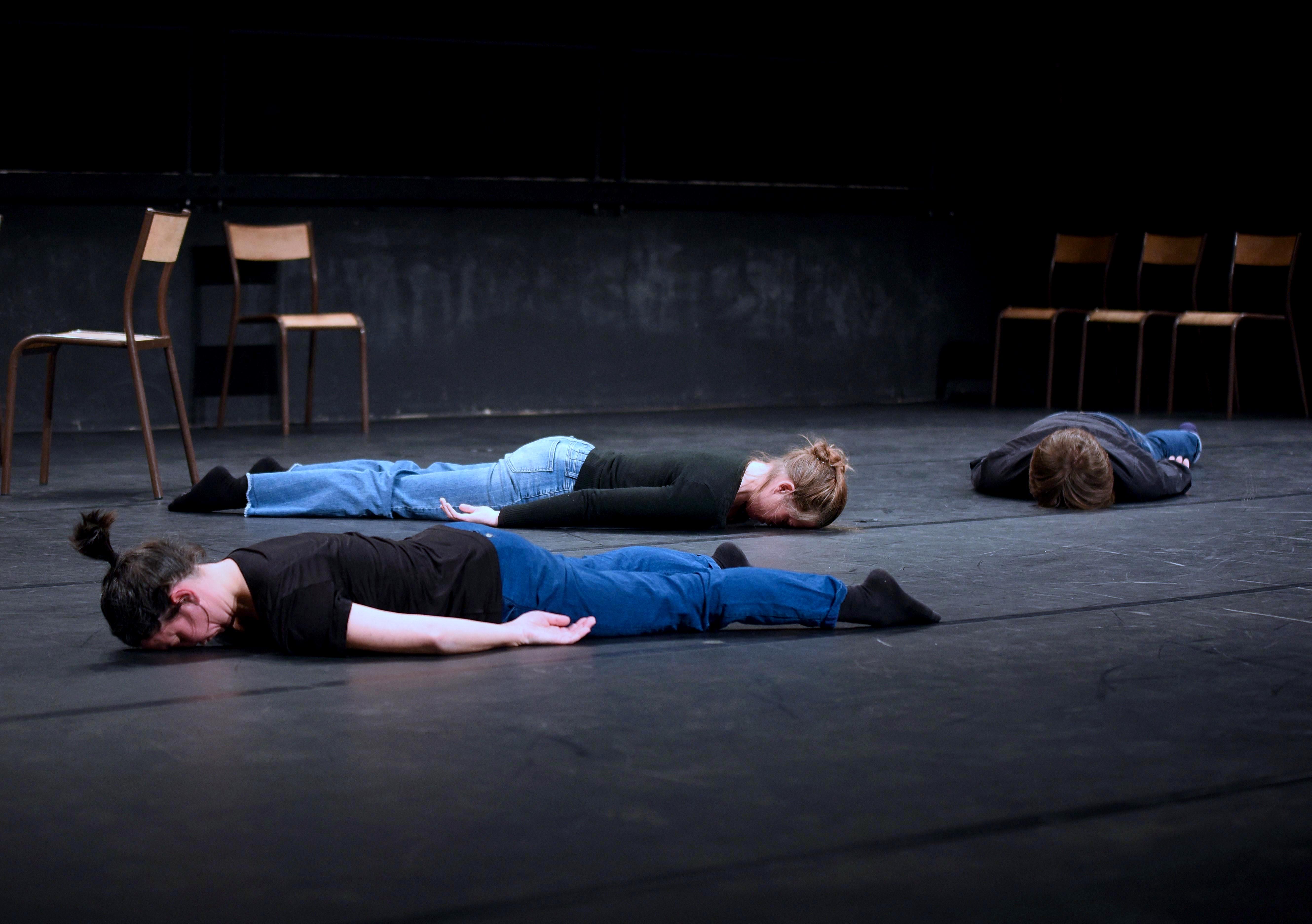 Cette traversée du vide est portée par quatre danseuses et danseurs qui improvisent avec leurs mots et racontent avec leur corps tout ce qui se joue entre les humains au-delà de leurs discours anodins.
