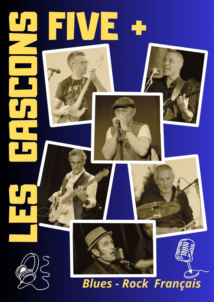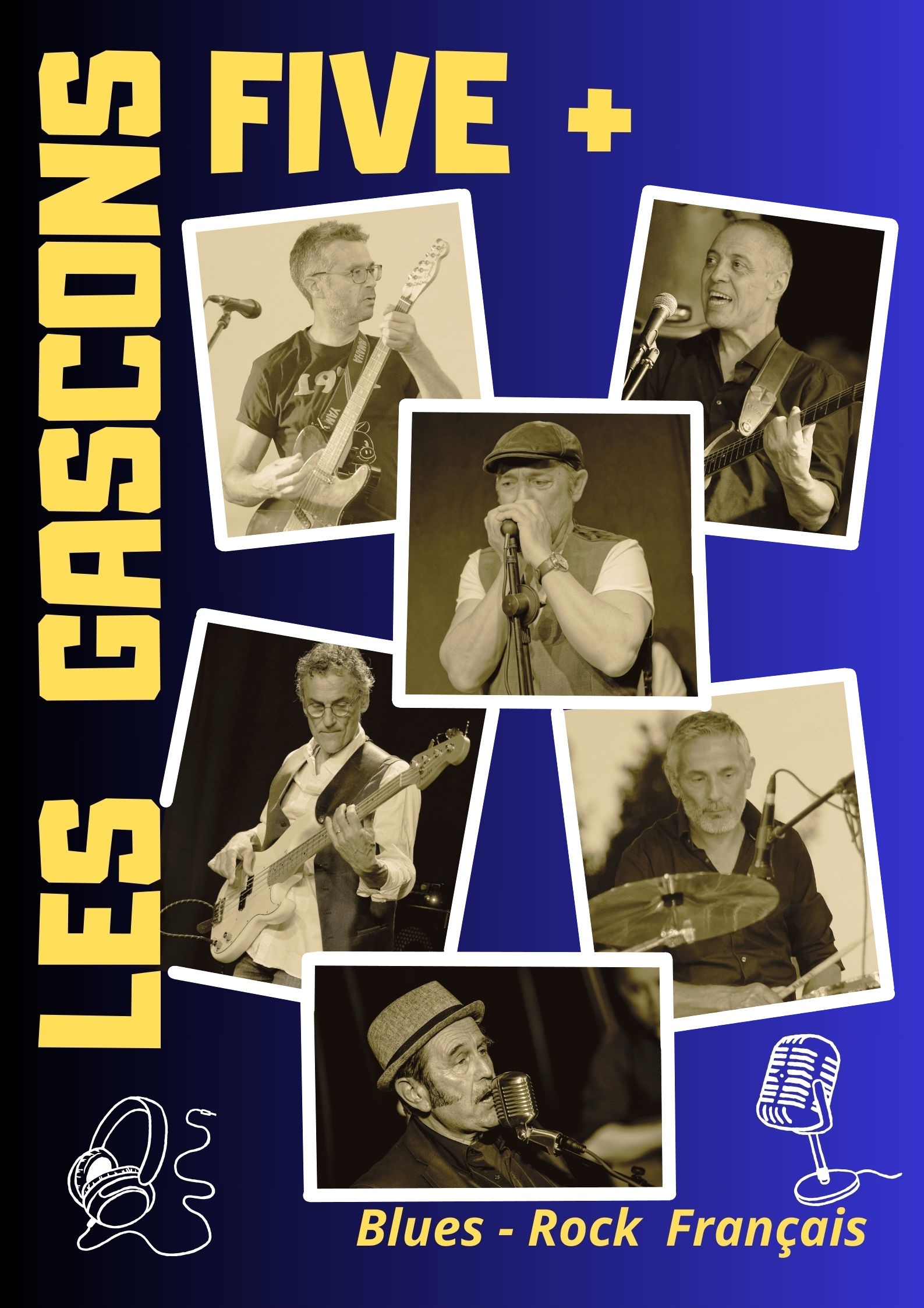 Les Gascons Five + c’est la rencontre de 6 potes d’origine gasconne, ou presque, dont l’envie est, avant tout, de faire découvrir ou redécouvrir notre univers musical Blues/Rock. Le dénominateur commun de ce savant mélange reste le choix de morceaux avec des textes en français. C’est ainsi que leur répertoire navigue entre Bill Deraime, Jacques Higelin, Alain Bashung , Paul Personne…