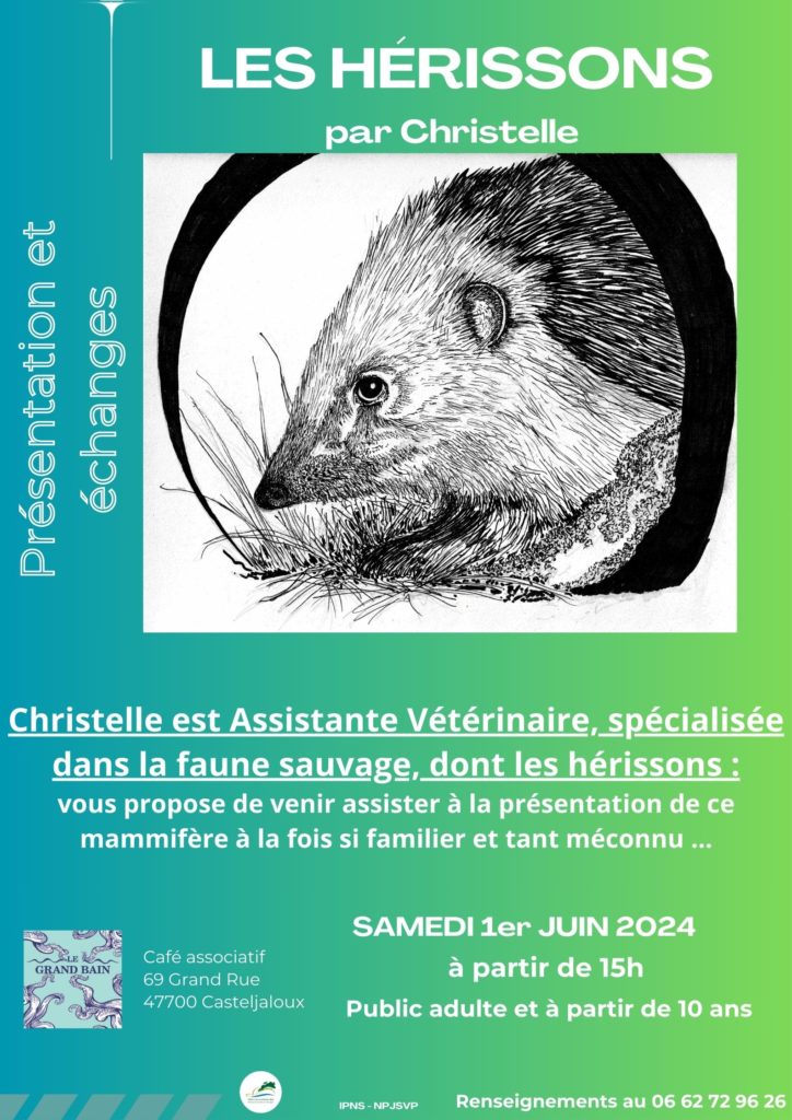 Christelle, Assistante Vétérinaire, spécialisée dans la faune sauvage dont les hérissons, vous propose de venir assister à la présentation de ce mammifère à la fois si familier et tant méconnu …