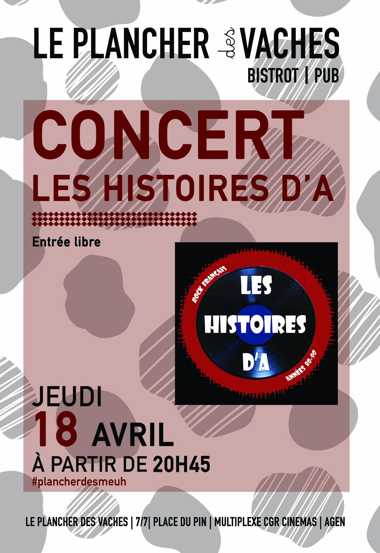 Le public pourra danser ou chanter au son des plus grands standards du « Rock made in France » ! : La bombe humaine, Argent trop cher, Cendrillon,Ça (c’est vraiment toi), Les Histoires d’A, C’est comme ça, Mala Vida, J’ai vu, Temps à nouveau, J’t’emmène au vent, Clandestino, Help Myself …