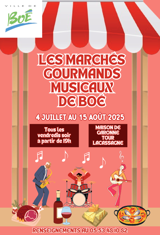 Cet été, la convivialité, la gastronomie et la musique seront à l’honneur à Boé avec le retour tant attendu des Marchés Gourmands Musicaux !