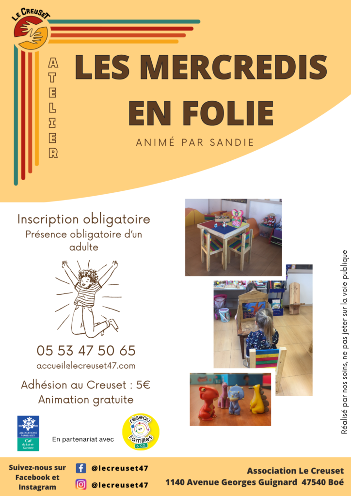 Mercredi 15 Mai – Répit ParentalDe 14h à 16h30Limité à 6 enfants