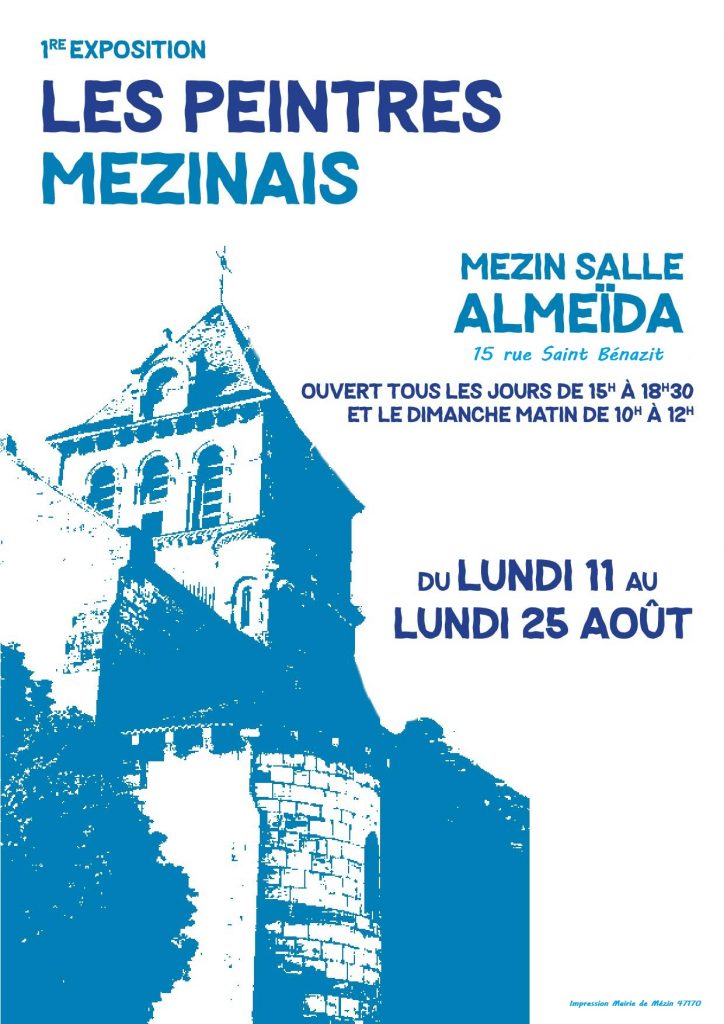 Des habitants de Mézin, amateurs et professionnels, passionnés de peinture se retrouveront ce mois d’août dans cette magnifique salle qu’est la Salle d’Almeïda, pour vous présenter quelques-uns de leurs travaux,