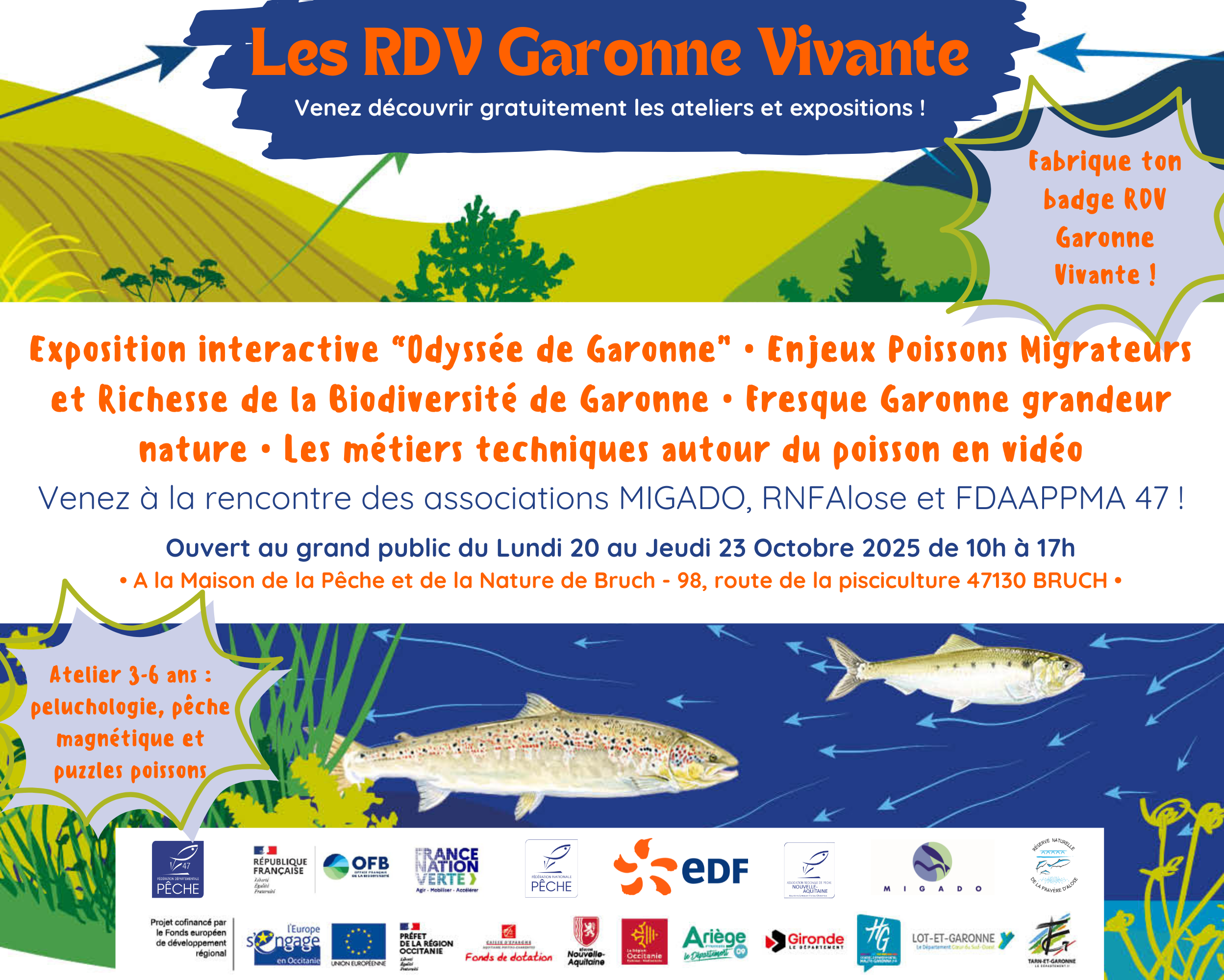 Les plus petits pourront s’essayer à l’atelier peluchologie, pêche magnétique et puzzles poissons et chaque visiteur pourra fabriquer son propre badge RDV Garonne Vivante !