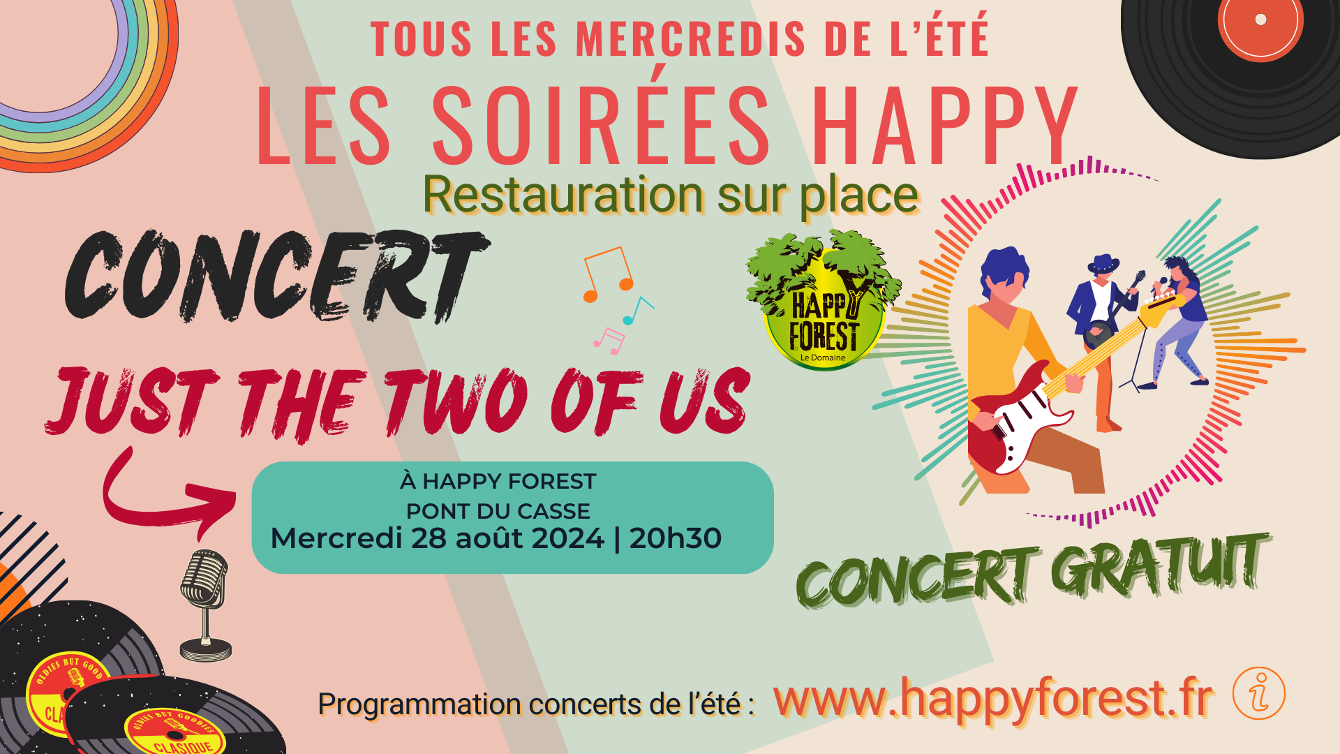 Rejoignez-nous pour des soirées estivales inoubliables, faites de musique, de gourmandise et de fun. Rendez-vous au Parc Happy Forest !