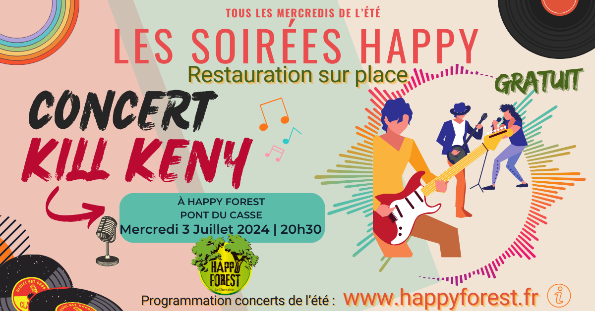 Rejoignez-nous pour des soirées estivales inoubliables, faites de musique, de gourmandise et de fun. Rendez-vous au Parc Happy Forest !
