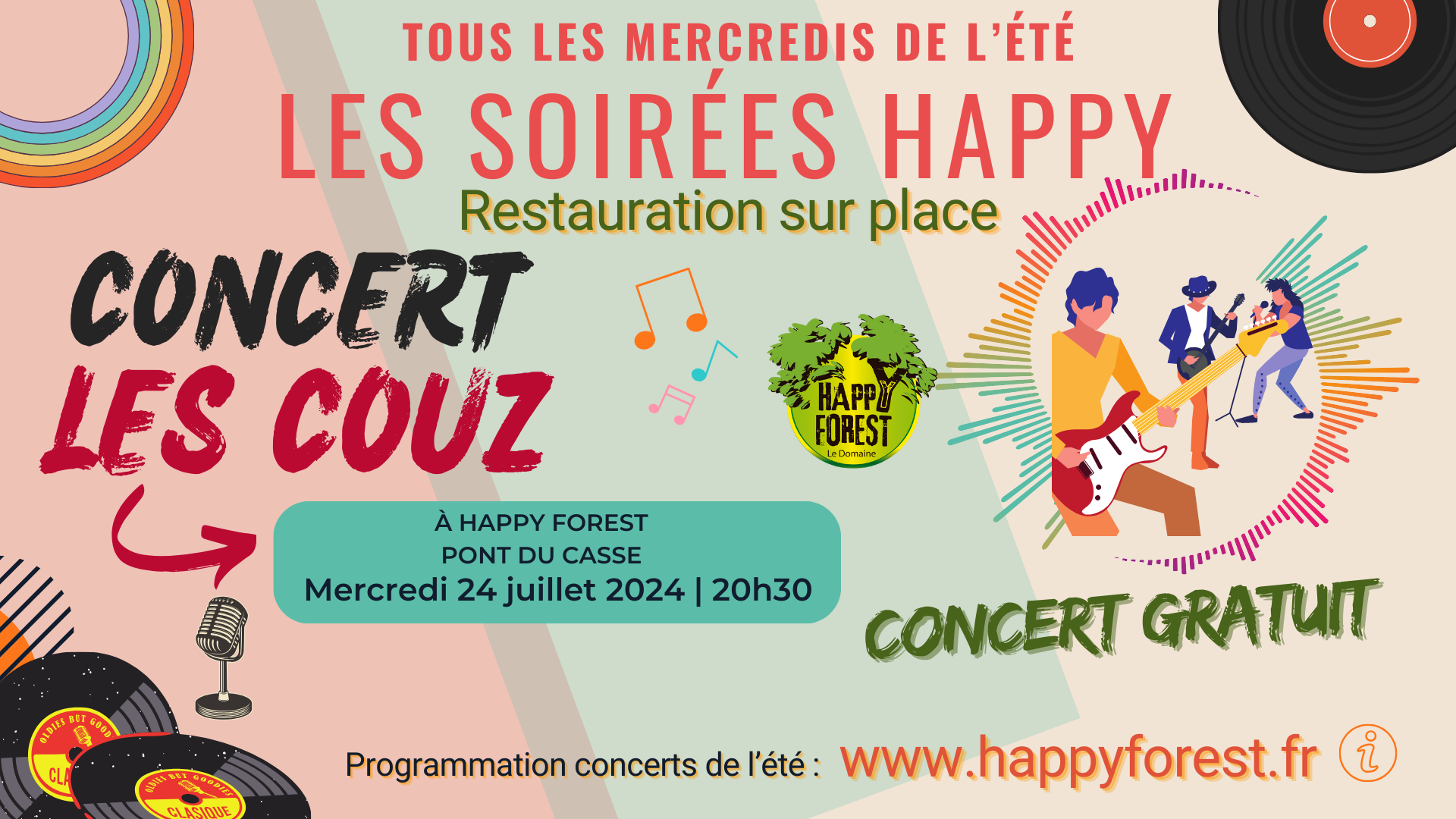 Rejoignez-nous pour des soirées estivales inoubliables, faites de musique, de gourmandise et de fun. Rendez-vous au Parc Happy Forest !