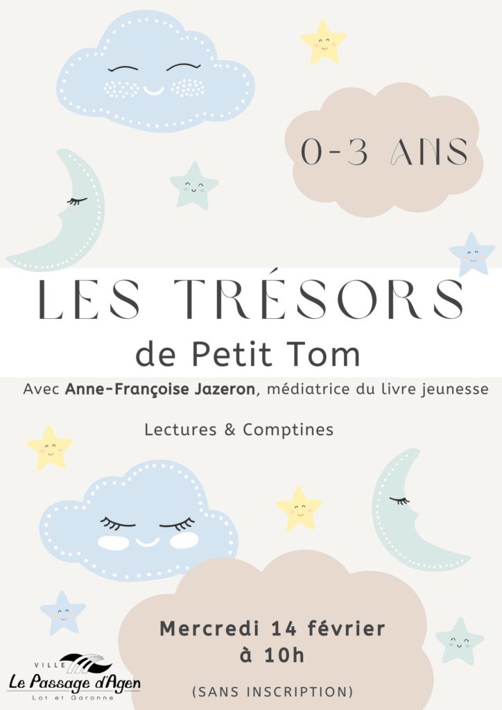 La Médiathèque municipale vous invite à l’animation pour enfants « Les trésors de Petit Tom », mercredi 14 février à 10h.