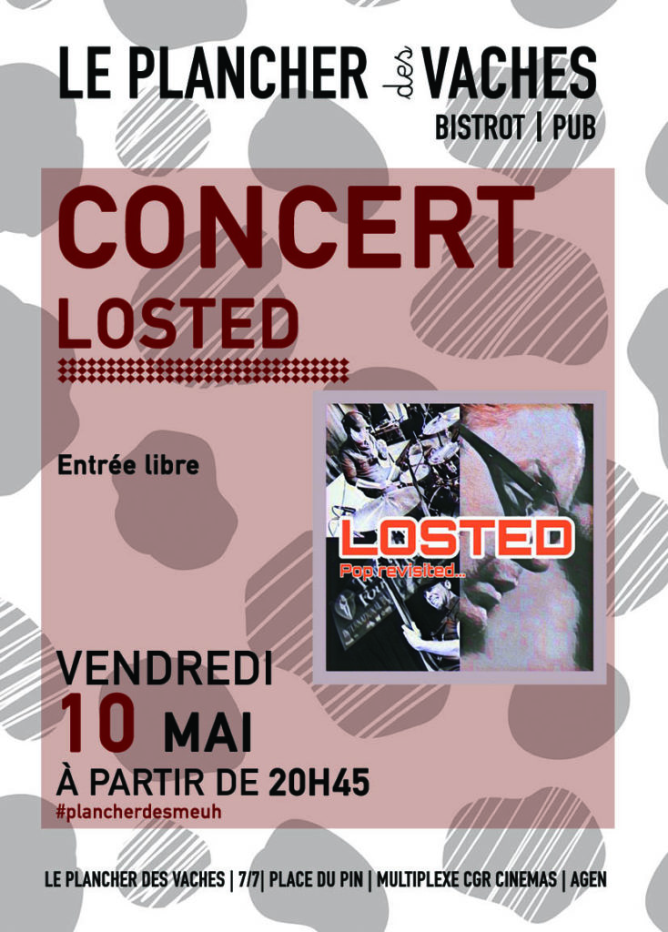 Trio musical composé de Stéphane Laborie au chant et au piano, de Quentin Pavis à la batterie et de Laurent Basso à la basse, Losted vous amènera dans son univers très personnel où les standards de la Pop Music se teintent de nouvelles couleurs, une occasion de redécouvrir des morceaux incontournables!