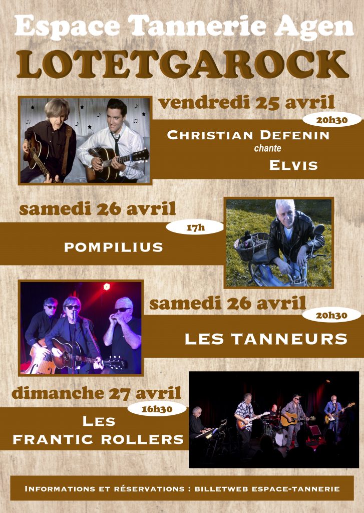 Evénement exceptionnel car ce seront les concerts d’adieu de Christian Defenin (le célèbre rock’n’roller agenais) et des Frantic Rollers (le plus vieux groupe rock du monde selon le Guiness Book of Records).