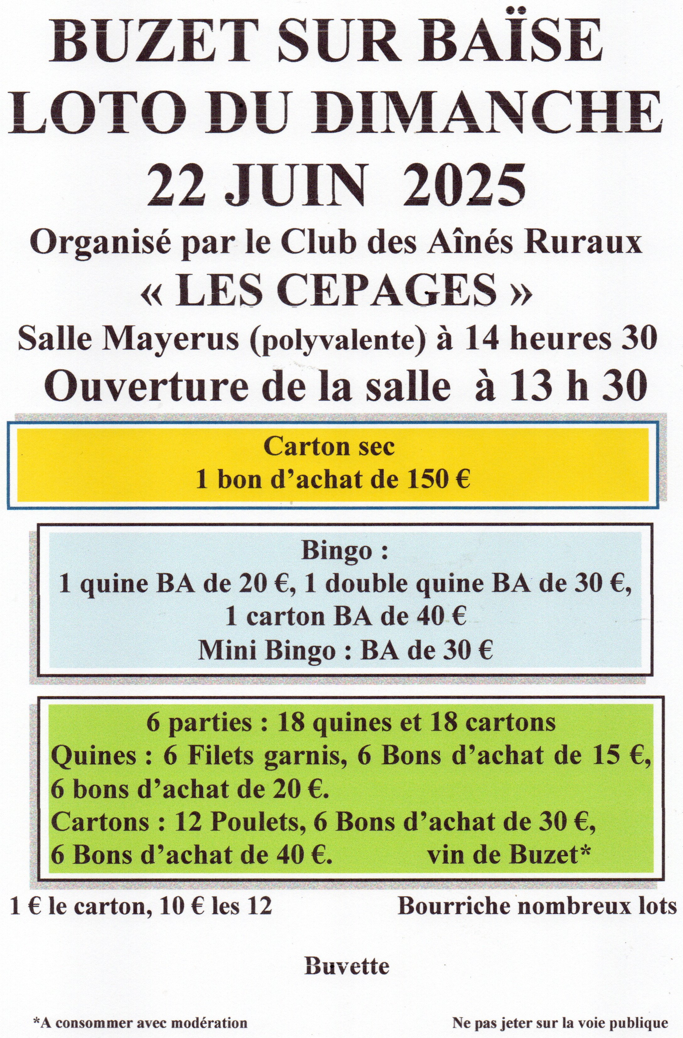 Loto des aînés ruraux Génération Mouvement, « Les Cépages de Buzet sur Baïse.