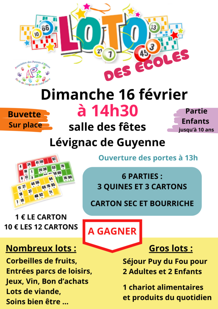 6 parties : 3 Quines & 3 Cartons. Partie enfants jusqu’à 10 ans