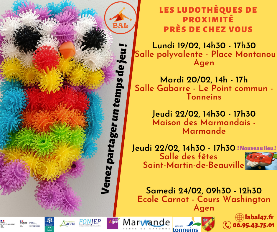 Retrouvez nous près de chez vous cette première semaine de vacances, autour de jeux de société et jouets, pour partager un moment convivial et ludique.