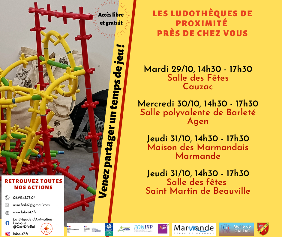 La ludothèque itinérante La BAL (La Brigade d’Animation Ludique) propose des ludothèques de proximité durant les vacances d’octobre.