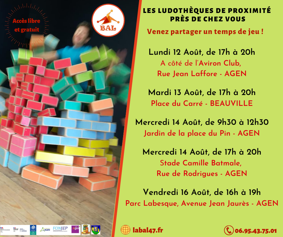 La ludothèque itinérante La BAL (La Brigade d’Animation Ludique) propose des ludothèque de proximité durant tout l’été.