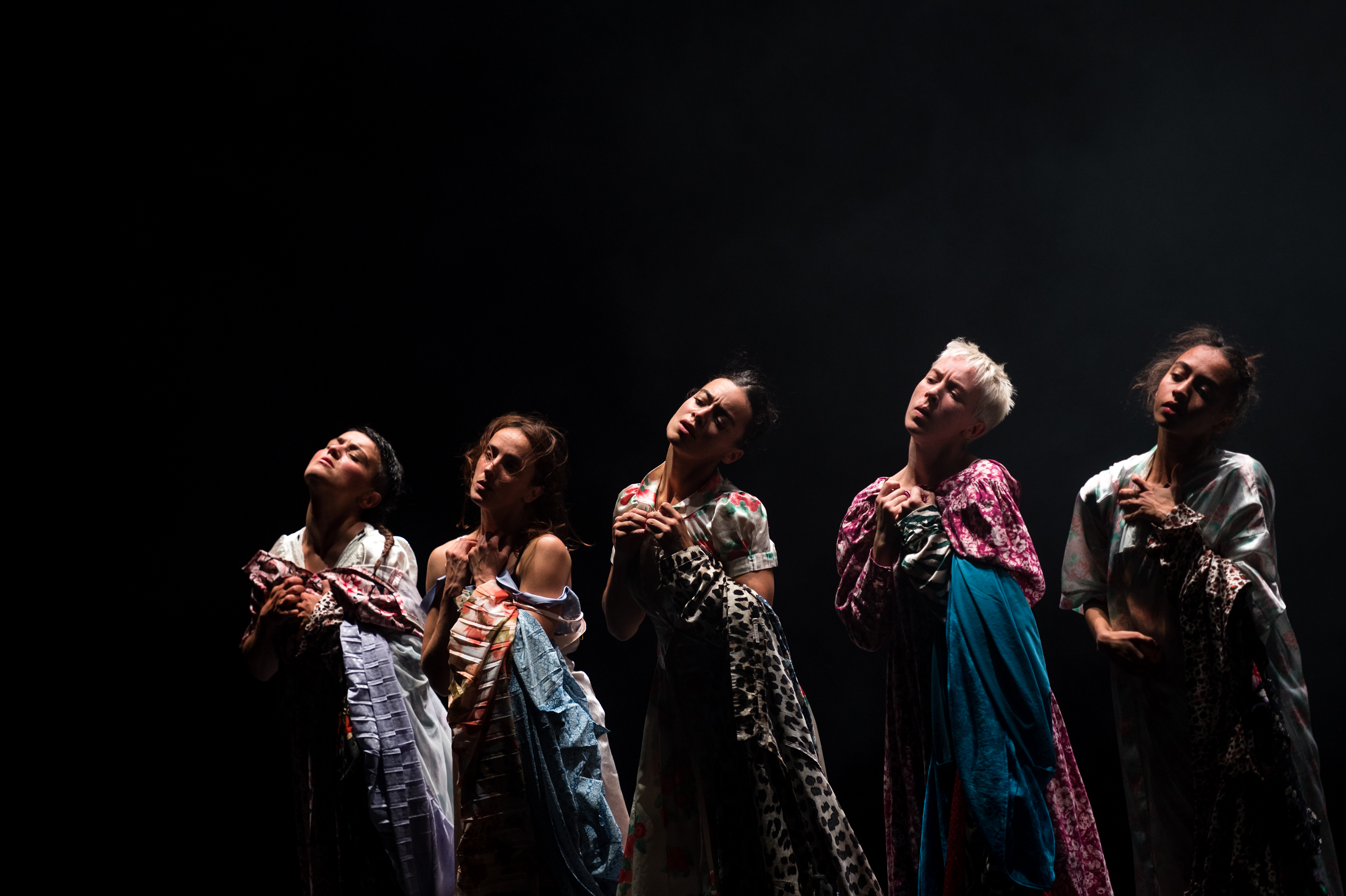 Avec Maldonne, sa première forme longue pensée pour cinq interprètes, elle transpose sur scène des émotions et moments de partage vécus avec ses sœurs, ses amies, les femmes croisées au fil des soirées et des années. Sororité, révolte, pleurs, euphorie et joie traversent une écriture chorégraphique percutante.