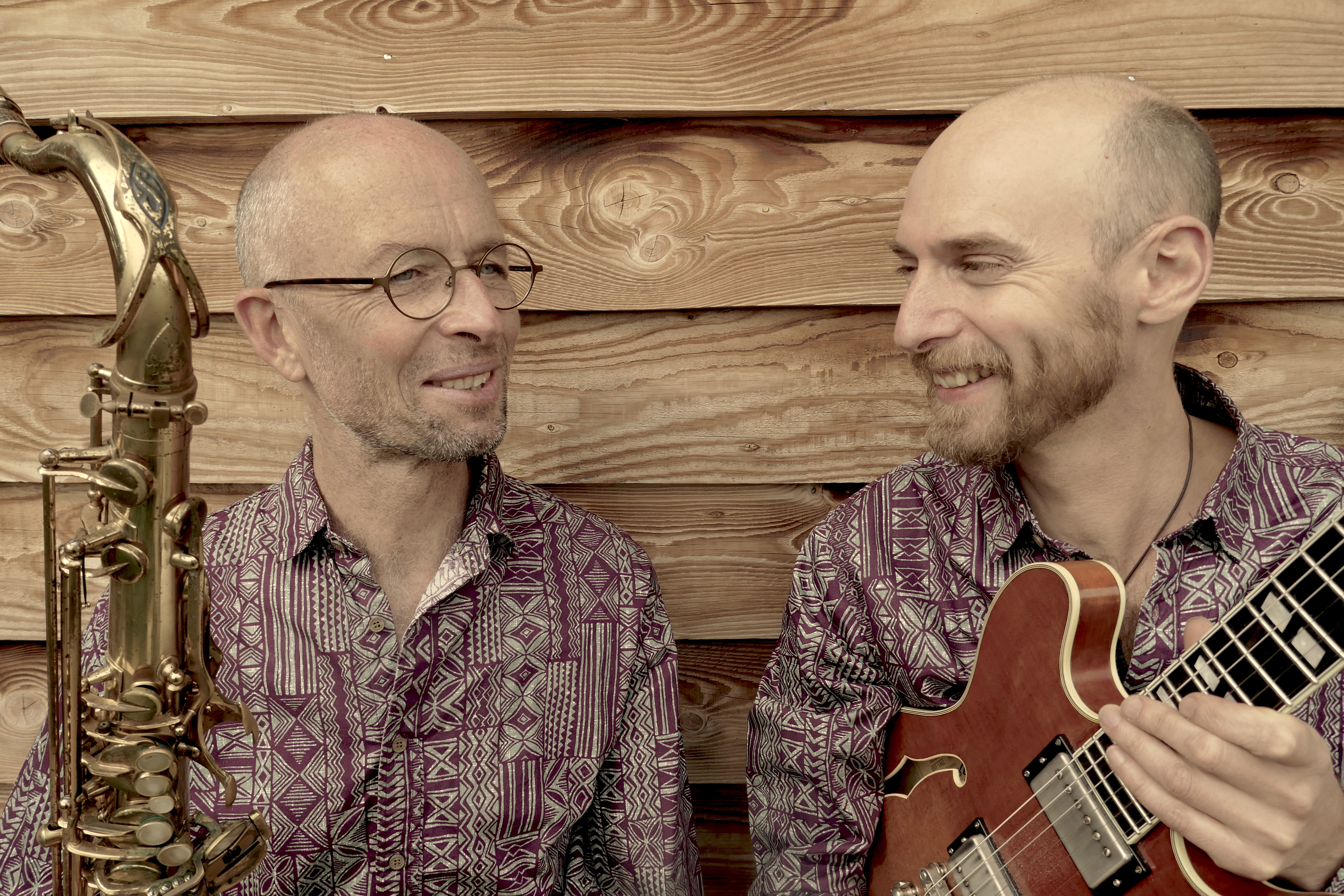 La guitare de David Clavel et le saxophone de Dirk Vogeler créent une alchimie entre rythmes d’ailleurs et mélodies personnelles dans une ambiance intime. La rencontre riche en énergie entre le chanteur guitariste lozérien et le saxophoniste allemand dégage une atmosphère profondément apaisée et sereine. Inspirés de musique traditionnelle africaine et instillés de blues, les arrangements fins et limpides permettent à l’auditeur de se laisser dériver dans un univers qui navigue entre exotisme et intériorité. La guitare met tour à tour en valeur les thèmes suaves du saxophone ou se fond avec lui dans une sonorité homogène. La voix douce de David Clavel s’immisce dans les mélodies instrumentales ou interprète des textes en français ou en songhaï (dialecte malien). La complicité des 2 musiciens, autant à la composition que dans le jeu, leur permet une expression individuelle qui fait naître des échanges musicaux authentiques et intimistes. Un spectacle aérien d’une grande pureté. A ne pas manquer.