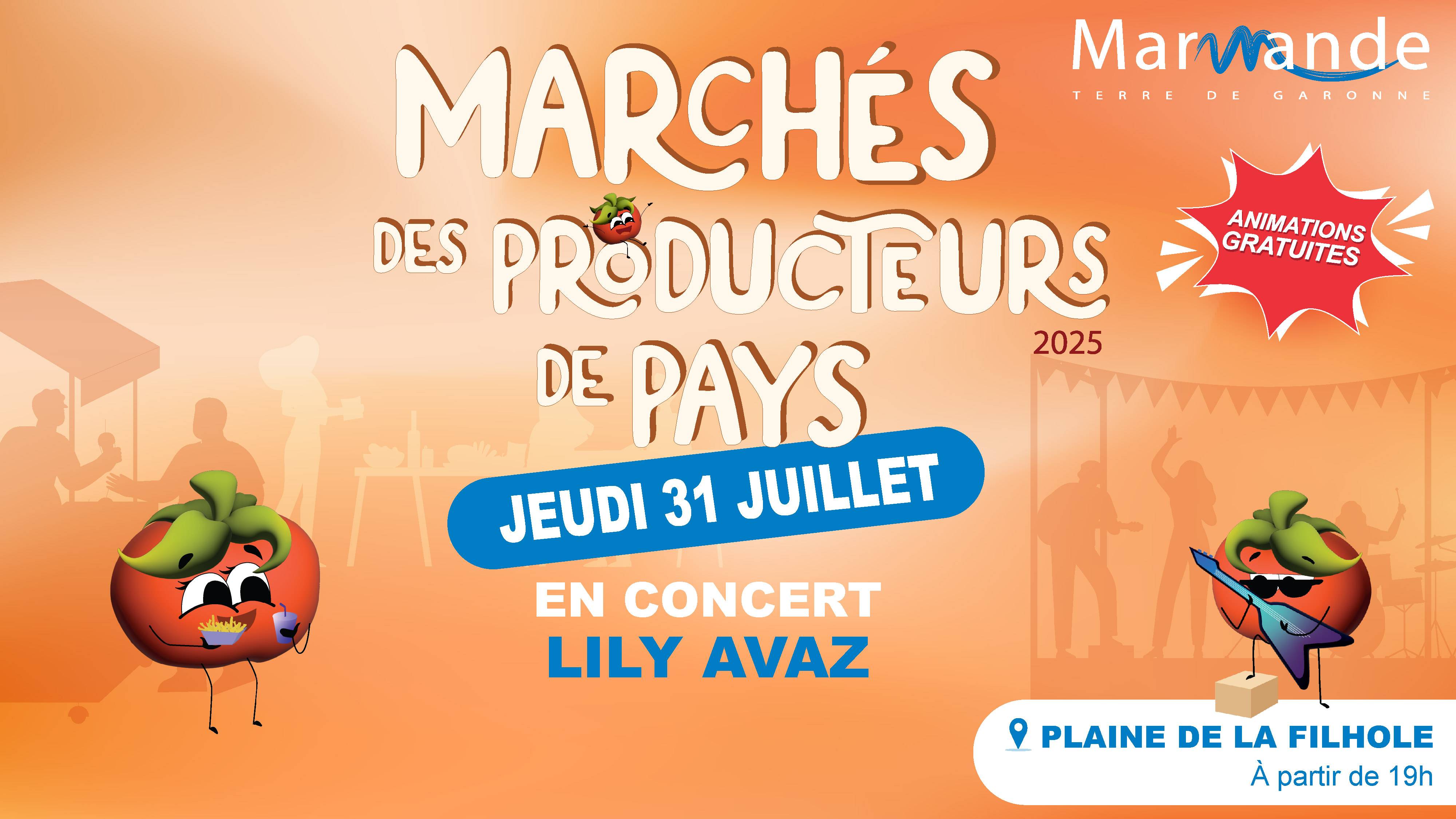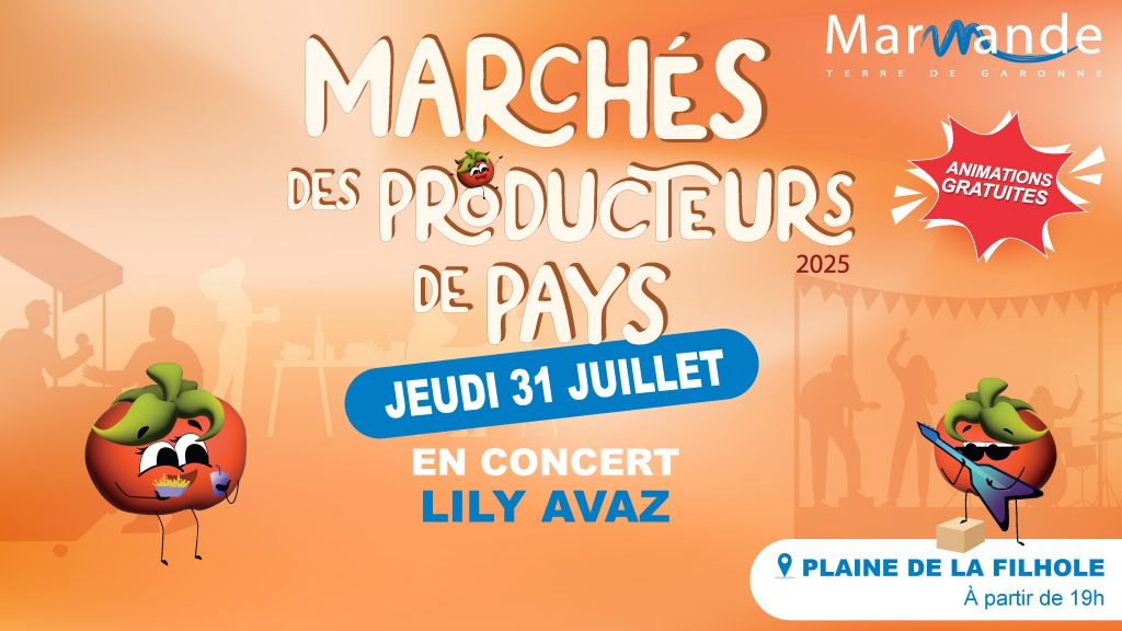 Ce marché sera exceptionnellement délocalisé à la Plaine de la Filhole pour cette date, et animé par Lily Avaz, un groupe de cinq musiciens qui vous invite à danser sur leurs reprises de chansons françaises revisitées aux rythmes latinos, ainsi que sur leurs compositions joyeuses et entraînantes.