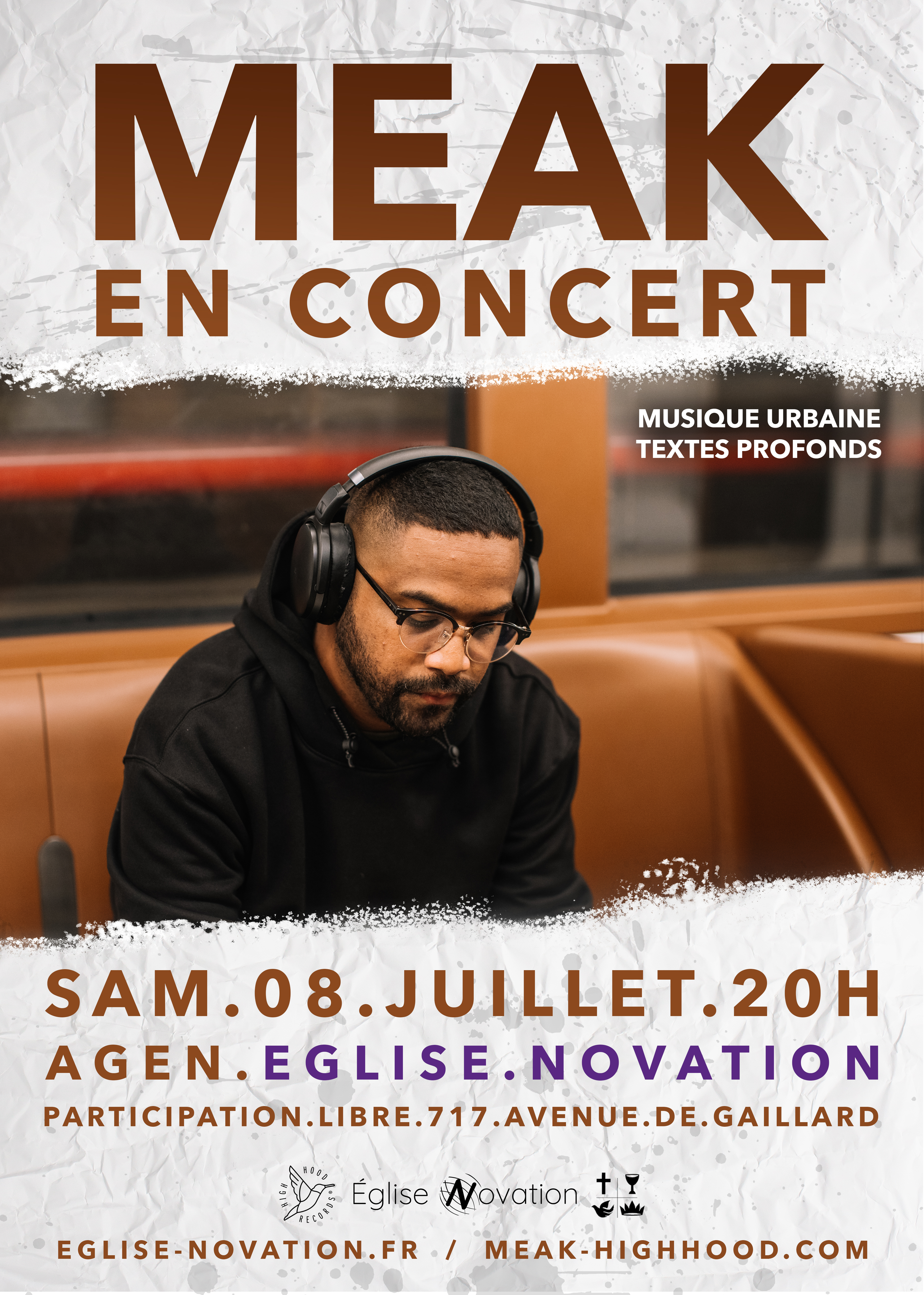 MEAK est un auteur, compositeur et interprète français qui dépose des rimes soigneusement ficelées sur des plages instrumentales concoctées par ses soins. À travers la finesse et la profondeur de ses textes, ce parolier nous offre un message puissamment différent, fraîchement trempé d’humour et d’amour. Cette poésie musicale vivifiante se marie à merveille avec les harmonies soul et les rythmiques hip hop qui l’environnent.