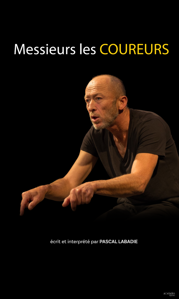 Le seul en scène « Messieurs les coureurs » relate la vie d’un ancien coureur cycliste girondin, Pascal Labadie. Ses victoires, ses défaites, ses interrogations, les ambiances de courses cyclistes de village, du tour de France des années 70/80 y sont retracées avec humour. Auteur vélodidacte et détenteur d’un savoir essentiellement cyclopèdique, le spectacle est entièrement écrit à la main et soufflé à la bouche.