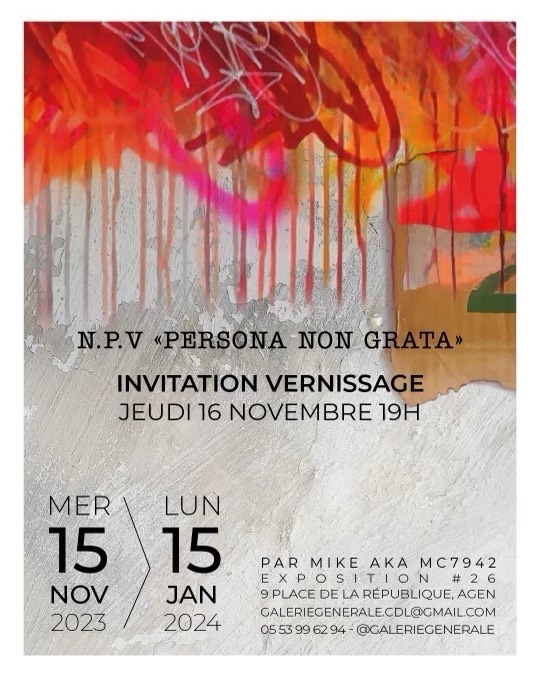 MC 7942, dit Mike est graphiste et éducateur technique auprès de jeunes. Il créé des toiles « pop/abstrac-art de rue » et fait aussi des graffitis de temps à autre sur les murs du jardin de sa mamie (et parfois déborde sur les murs de ses voisins). Il a de nombreuses passions visuelles et auditives liées à la « rue » au sens large, et essaie de mêler toutes ces influences sur toile, de poser le cerveau et de prendre du plaisir tout simplement. Il aimerait amener à la rencontre humaine, continuer à bousculer les codes, rire, partager des instants de vie et, pourquoi pas, générer des connexions qui peuvent aboutir à de nouveaux projets… L’inspiration est partout.