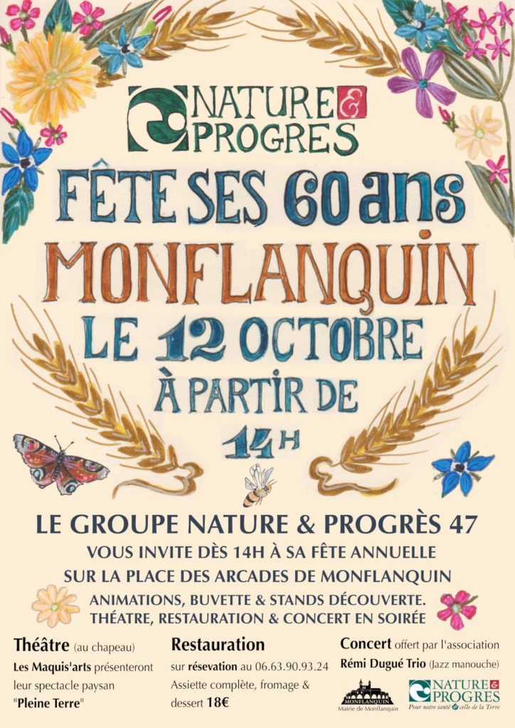 Le 12 octobre, Nature & Progrès 47 célèbre les 60 ans de la mention bio pionnière avec une fête ouverte au public sur la place des Arcades à Monflanquin.