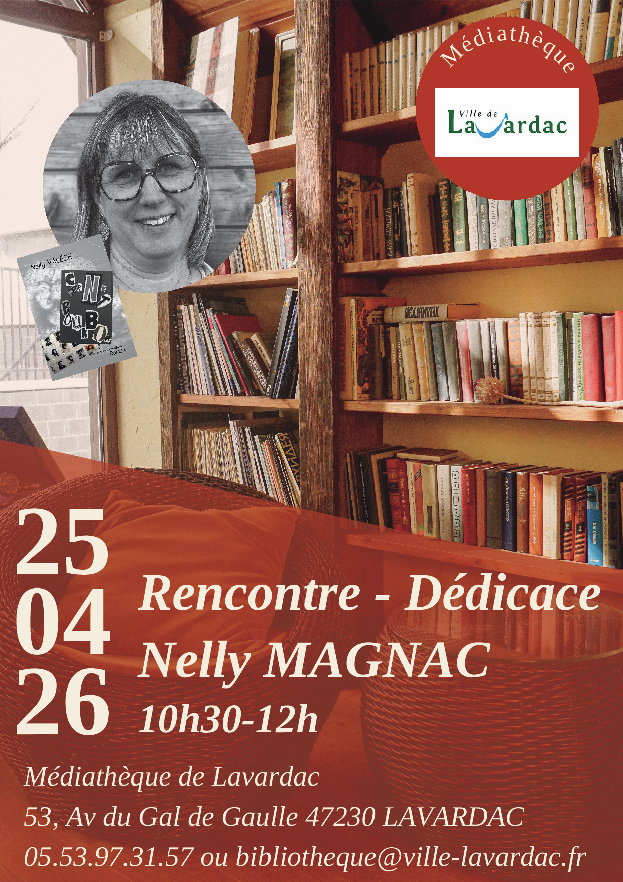 La Médiathèque de Lavardac a le plaisir de vous inviter à un moment d’échange privilégié avec l’autrice Nelly Magnac (Nelly Valèze).