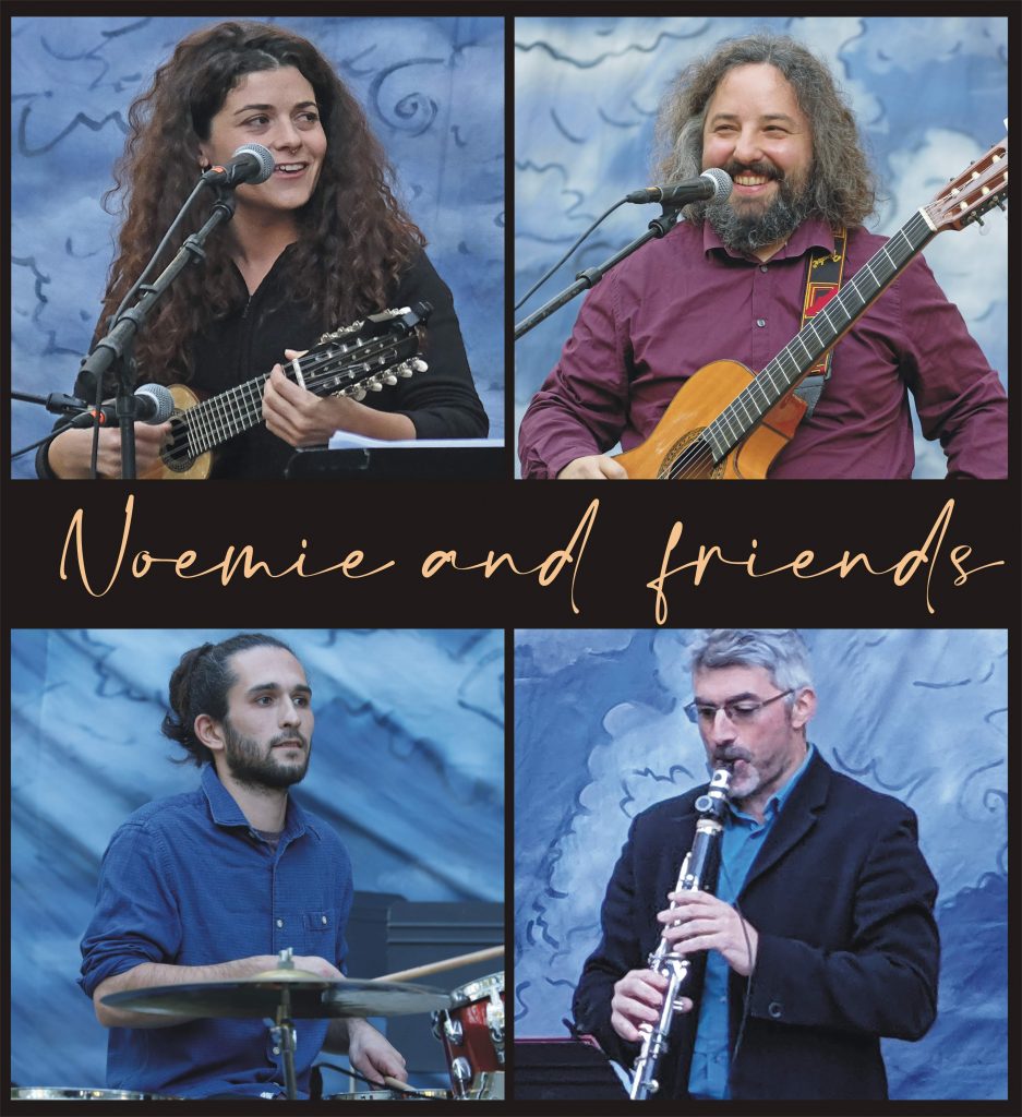 Noémie et ses acolytes vous feront voyager au son de leurs guitares, charango, cavaquinho, instruments à vents et percussions diverses à travers des chansons venues des quatre coins du globe.