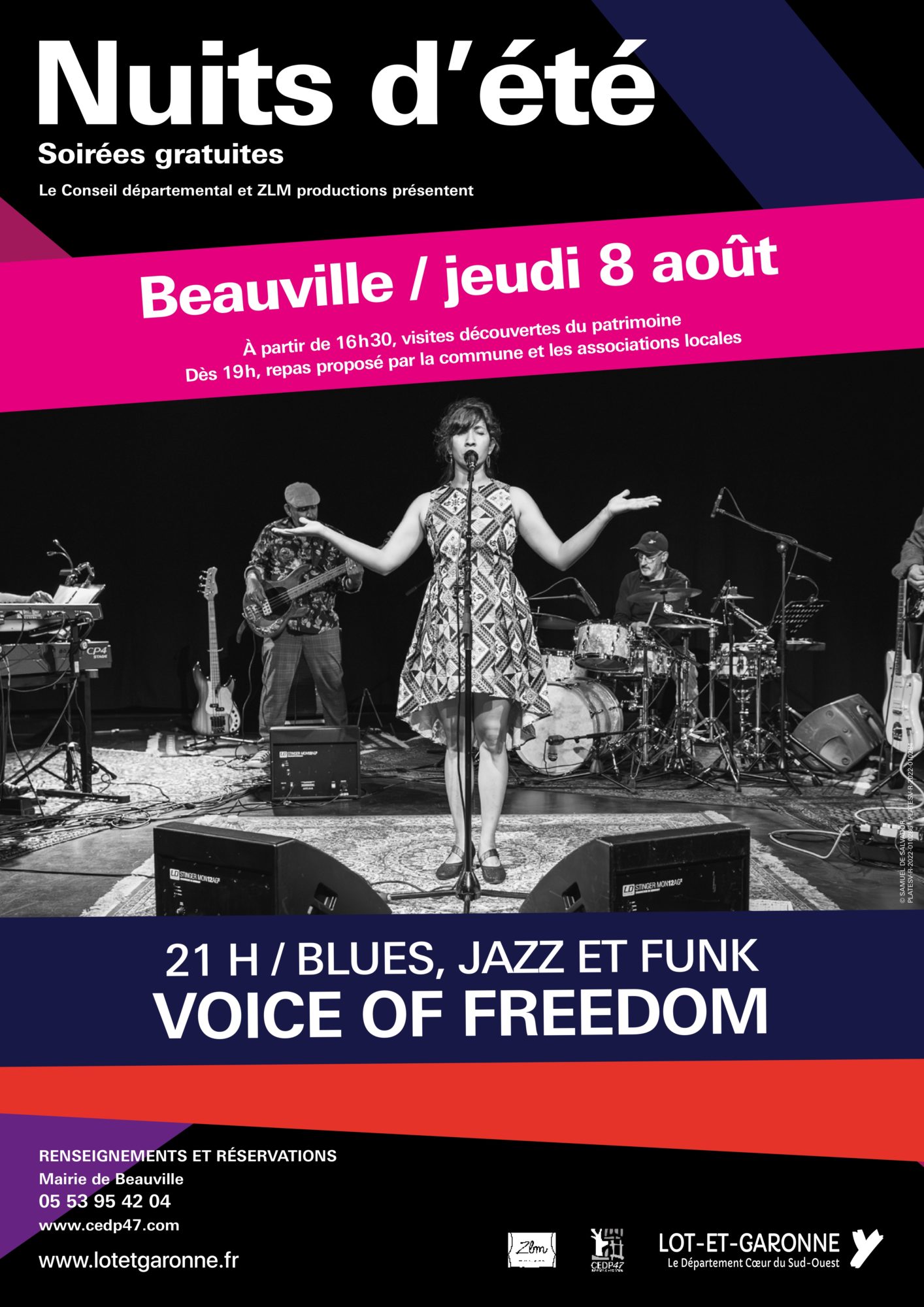 Repas proposé par la commune et les associations locales. - 21h : Voice of freedom, Blues, Jazz, Funk