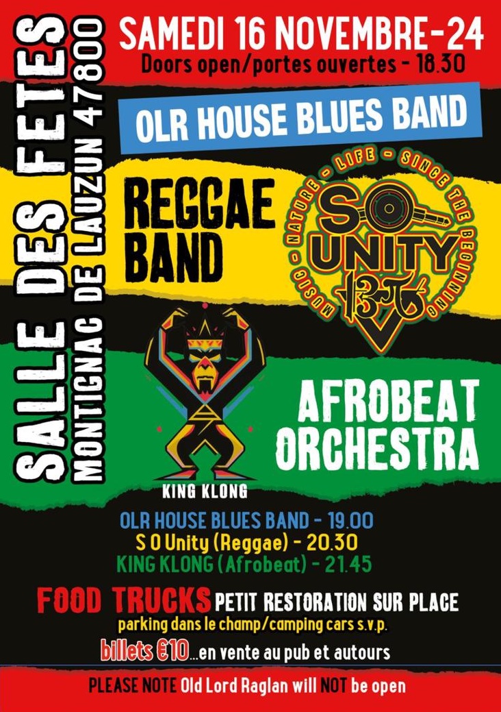 Billetterie disponible au Old Lord Raglan.