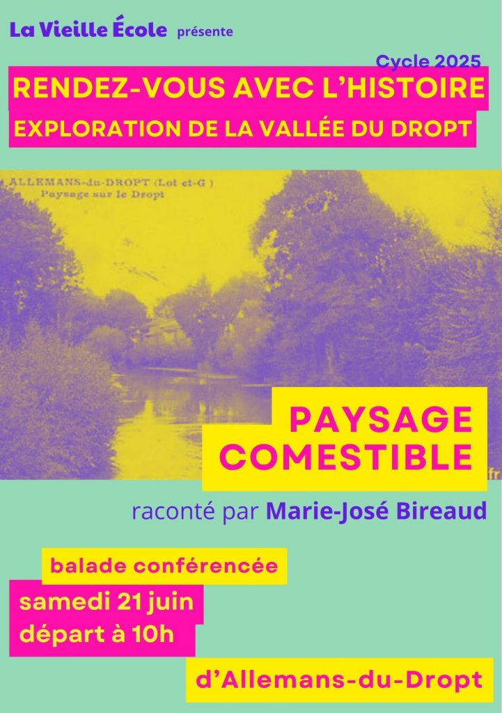 Laissez-vous porter par une découverte sensible de la Vallée du Dropt. Par une balade le long des chemins, haies et prairies, vous apprendrez à reconnaître les plantes sauvages comestibles et à lire le paysage à travers les récits des anciens et les évolutions des politiques agricoles.