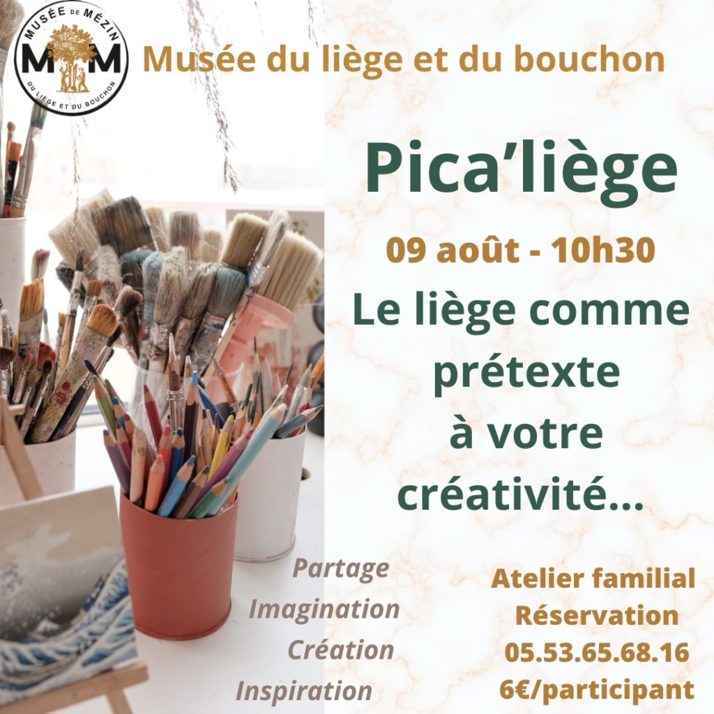 Loisirs Pica’liège Atelier Loisirs Créatifs Musée du liège et du Bouchon - Andiran rue des puits Andiran Voir tous les événements se déroulant ici le 9 août 2023 A 10h30 Familial 6€ Le liège comme prétexte à votre créativité. Musée du Liège et du Bouchon 05 53 65 68 16 museemezin@orange.fr