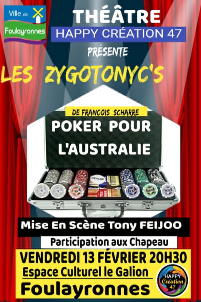 Happy Création 47 présente Les Zygotonyc’s dans la pièce de théâtre « Poker pour l’Australie ».