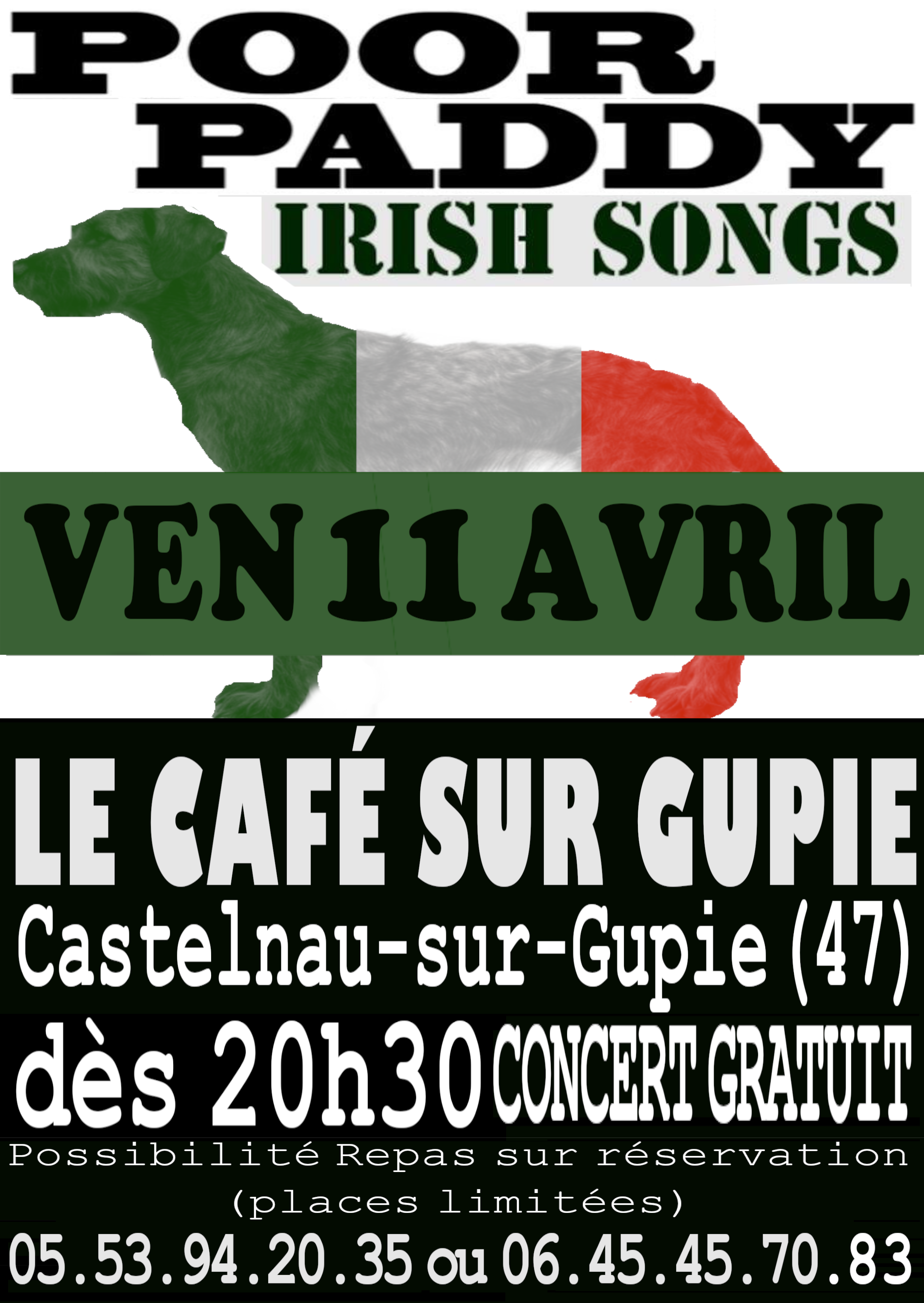 Concert gratuit très irlandais pour fêter la Saint Patrick à Castelnau sur Gupie.