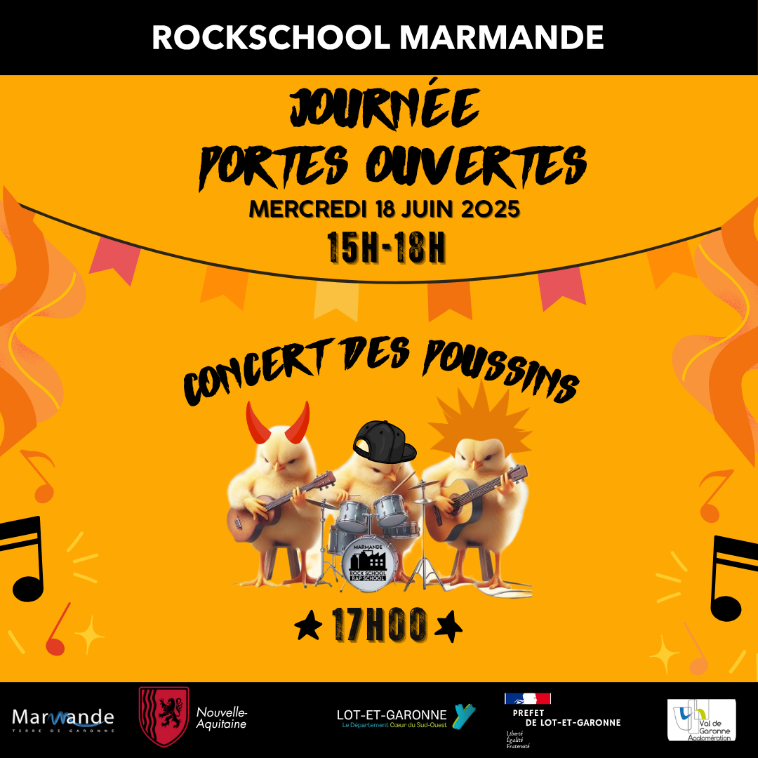Portes ouvertes à la Rockschool Marmande avec un concert/jam des poussins à 17h.