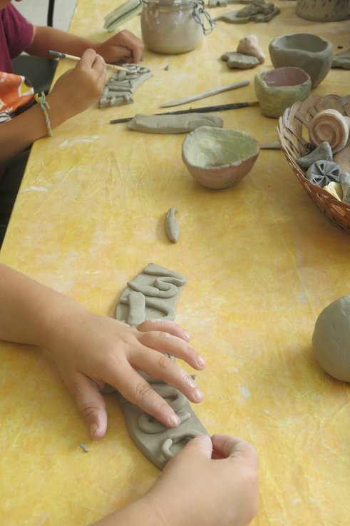 Atelier poterie pour les enfants à partir de 5 ans. Les adultes sont acceptés s’il reste des places.