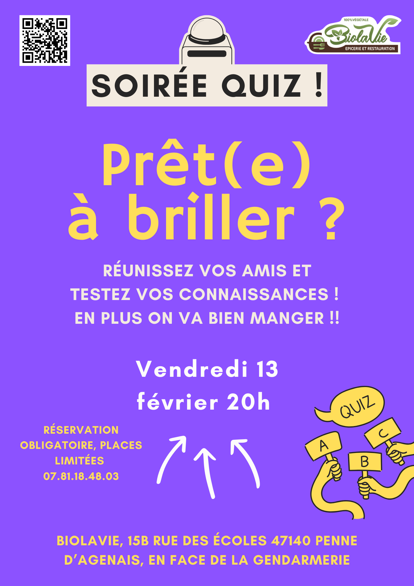 Venez vous confronter à une autre équipe dans un quiz inspiré de l’émission « burger quiz » ! Autour du thême du réchauffement climatique, vous serez confronté à des questions complétement loufoque mais pourtant bien instructives ! Bonne humeur garantie !
