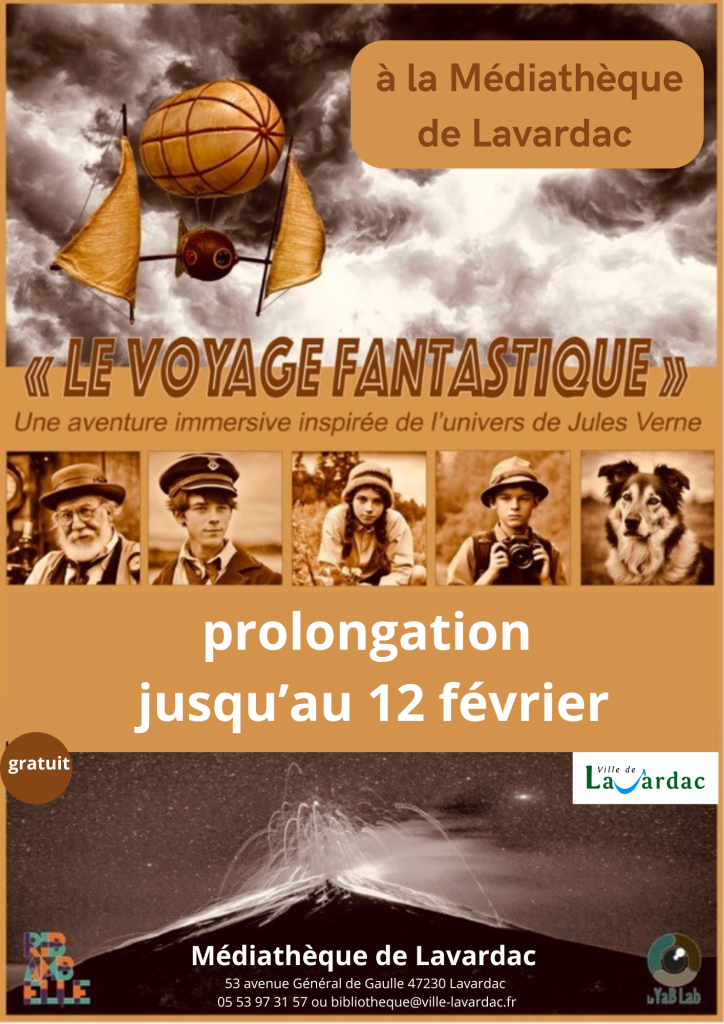 Les artistes Nathalie Tisné et Yannick Beslot ainsi que la Médiathèque de Lavardac ont la joie de vous annoncer la prolongation jusqu’au mercredi 12 février de l’installation spectaculaire immersive « Le Voyage Fantastique ».