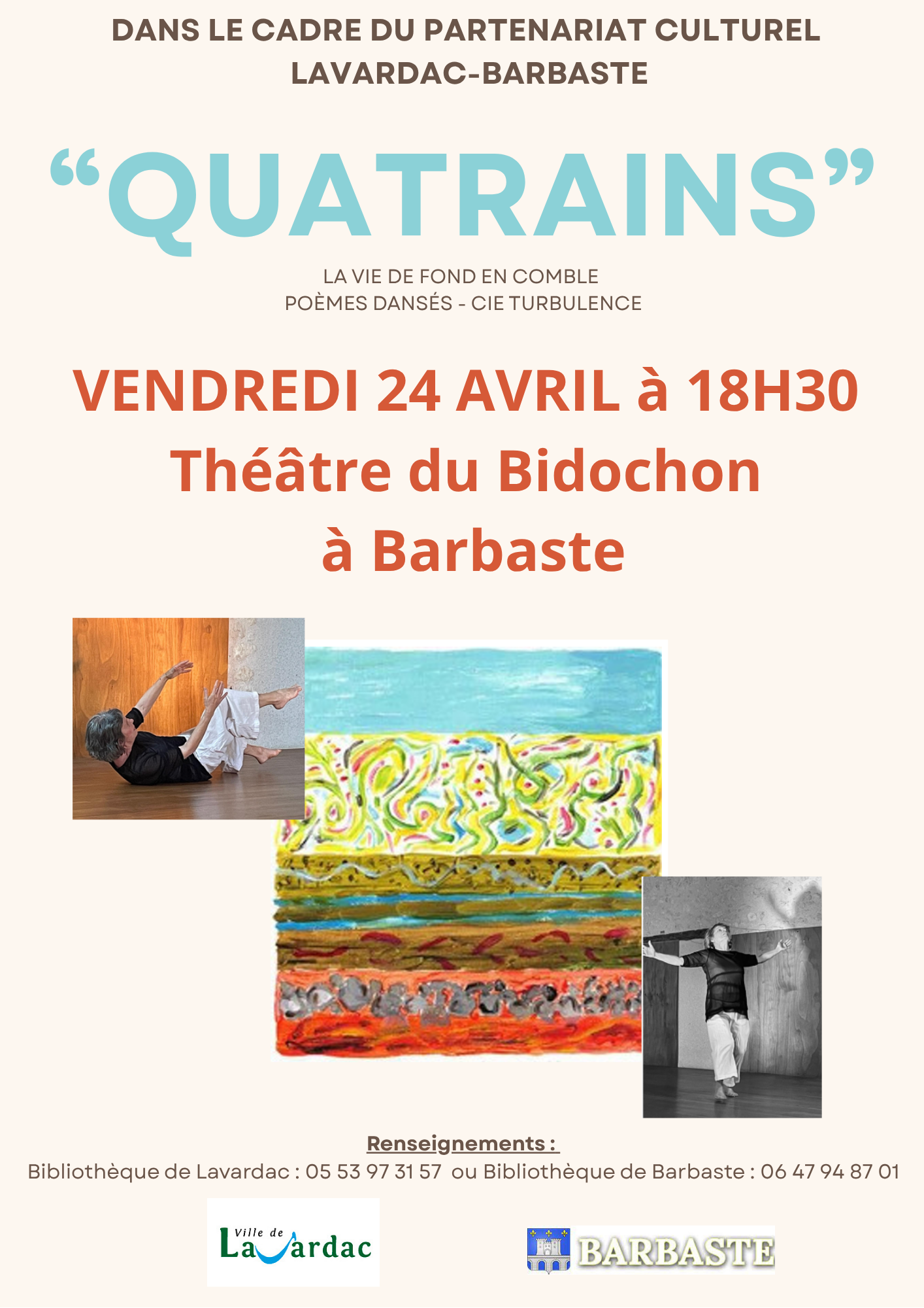 La Cie Turbulence vous invite à une expérience sensorielle unique où le mouvement rencontre le verbe. Dans le cadre du partenariat culturel entre Lavardac et Barbaste, découvrez un spectacle d’une grande finesse intitulé :