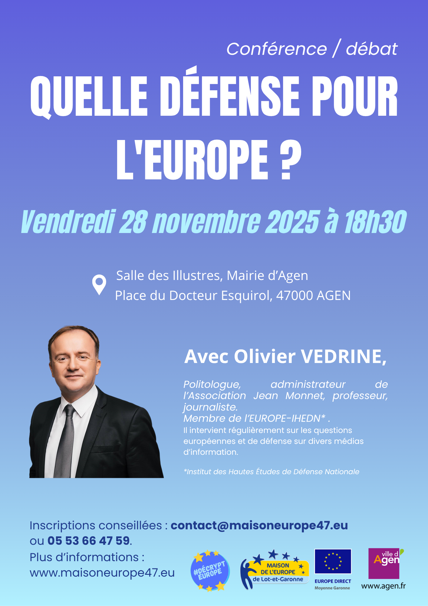 Inscriptions conseillées à contact@maisoneurope47.eu ou au 05 53 66 47 59.