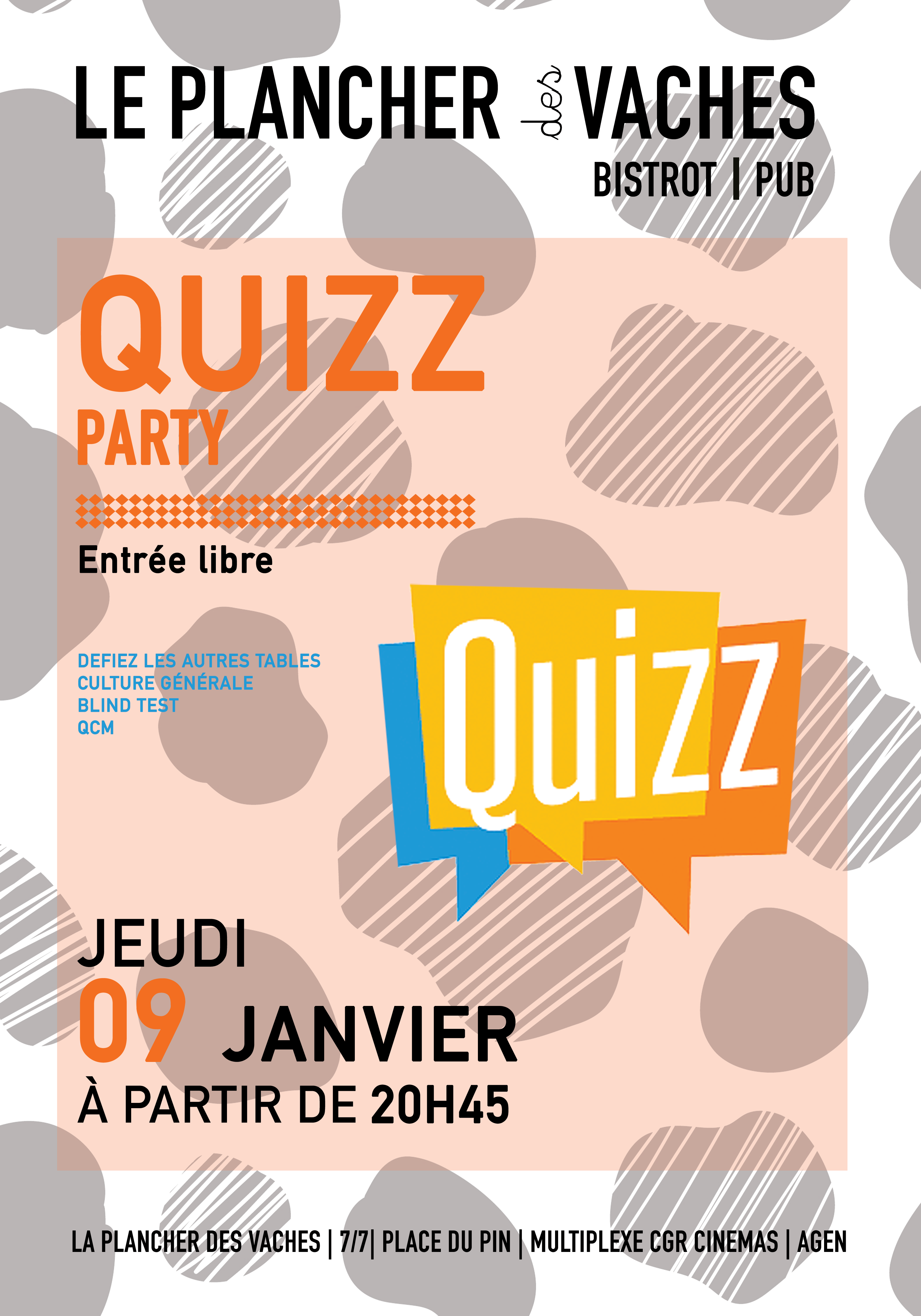Testez votre culture générale avec des questions mais aussi des Blind Test et bien d’autres surprises. Défiez les autres tables et repartez avec les pour les 3 premiers