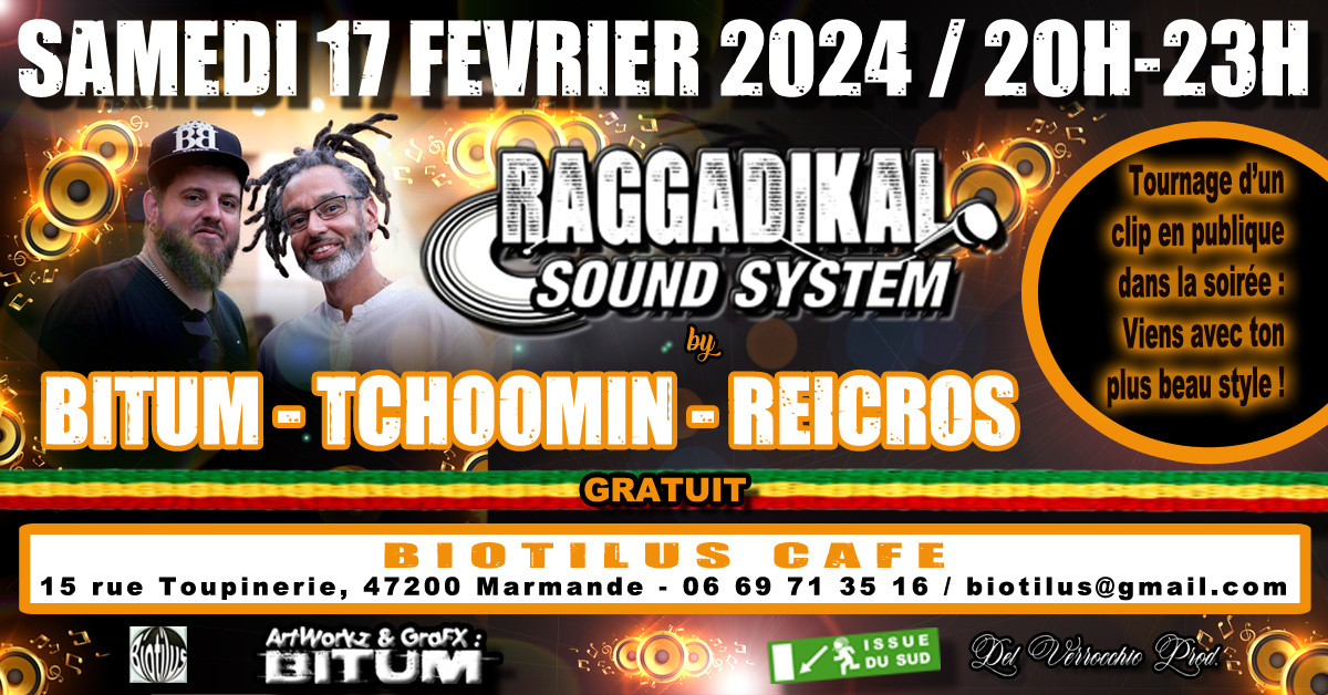 Dès 20h venez profiter des wicked selections de Bitum aux manettes du RAGGADIKAL SOUND (Roots, Reggae Dancehall, Dubplates, Remixs, Dub, Dubstep, Jungle…)