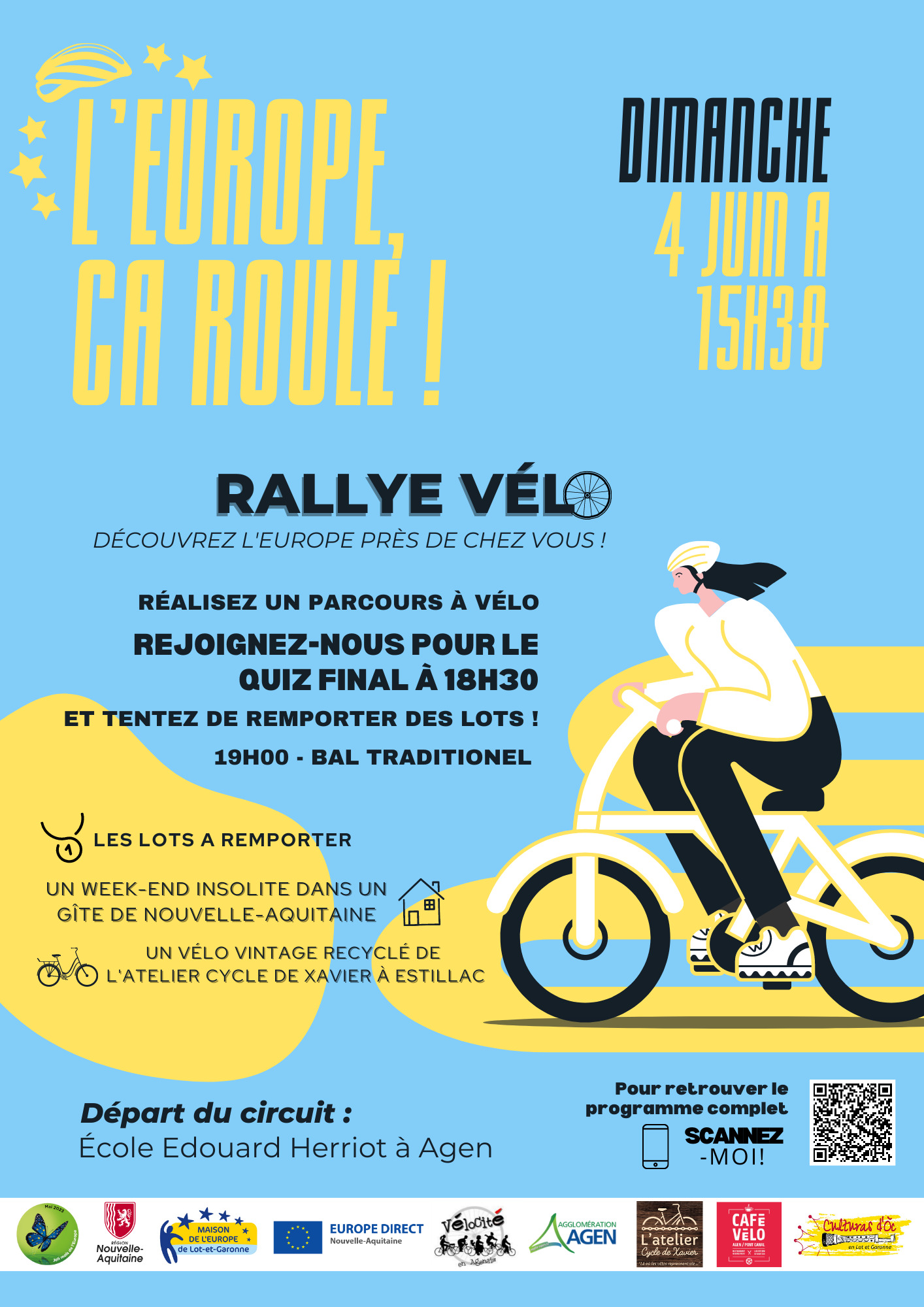 La Maison de l’Europe de Lot-et-Garonne / Europe Direct Moyenne Garonne organise en partenariat avec la région Nouvelle-Aquitaine, Vélocité en Agenais, l’Atelier cycle de Xavier, le Café Vélo et Culturas d’Oc un rallye vélo, « L’Europe, ça roule » le dimanche 4 juin à partir de 15h !